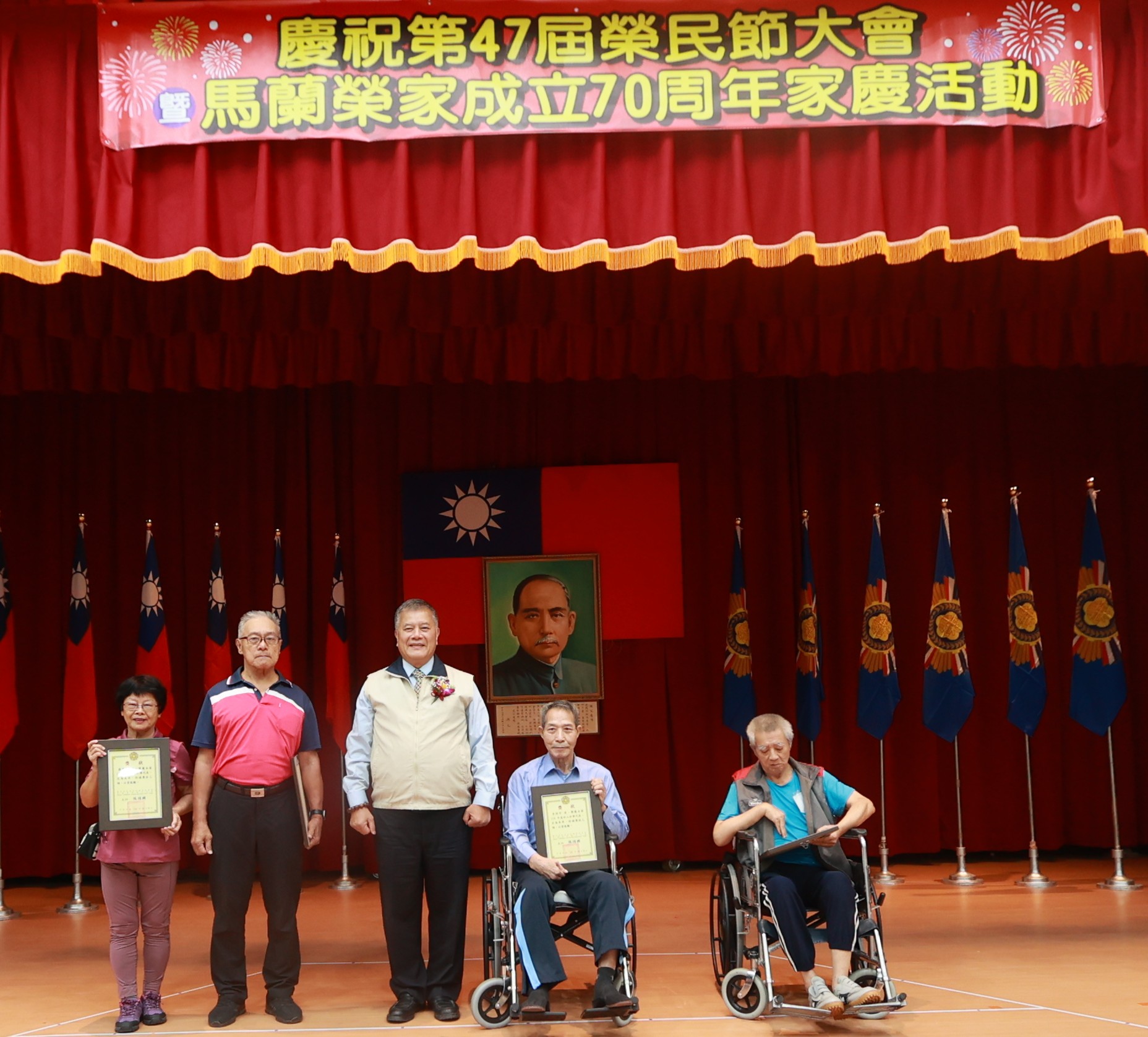 慶典活動由輔導會吳志揚副主任委員主持,吳副主委首先表達對榮民們的辛勤付出表示深切的感謝與敬意。榮民節活動由榮民先進與各界貴賓齊聚一堂,現場氣氛熱烈而感人。馬蘭榮家自成立以來,不斷創新致力於提供優質的照護服務,為全國首創結合醫療與照顧的醫養合一特色服務。活動讓與會貴賓共同回顧老照片了解馬蘭榮家70年來發展的歷程,也運用歡樂的園遊會讓參與的貴賓體驗動態多元的服務與各項資源。