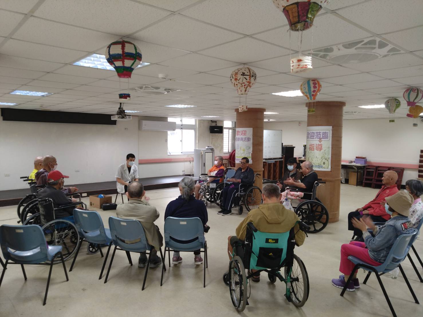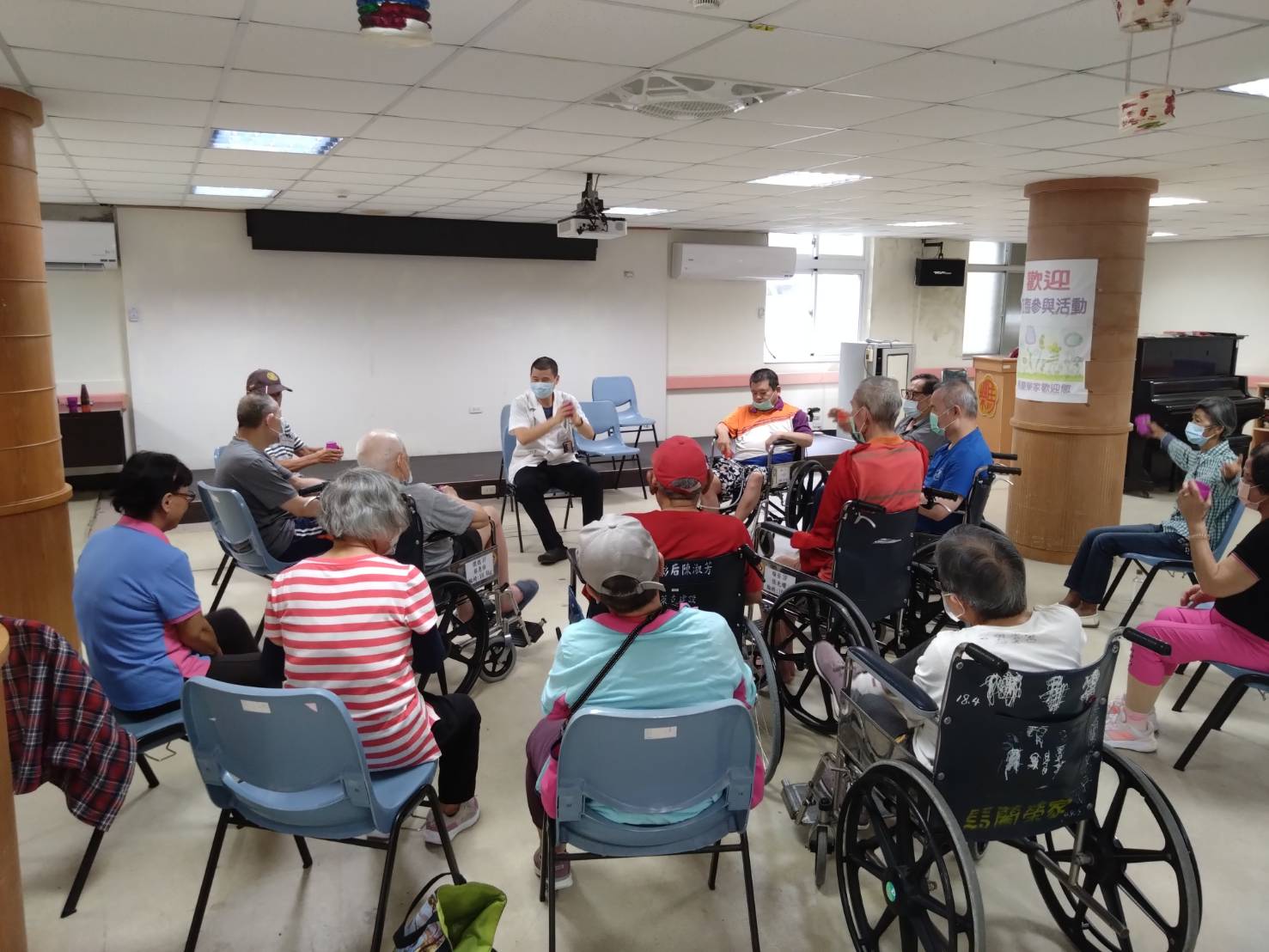 為提升住民身心發展並延緩功能退化,馬蘭榮家與臺北榮總臺東分院合作,邀請該院齊柏勛職能治療師至榮家辦理共三場次的「職能復健—團體治療活動」,以活潑有趣的方式帶領長輩進行功能訓練,深獲住民熱烈迴響。 隨著住民年齡增長,維持良好的手眼反應力十分重要,此次課程以三大主題規劃,包括「手能伸巧」、「眼明手快」與「手腦並用」。齊治療師依據長輩的能力與需求,設計多樣化活動,如手部關節活動、精細動作操作、視動協調練習、注意力與記憶訓練等,透過循序引導與團體互動,使住民在輕鬆氛圍中提升肢體靈活度並增進認知功能。 馬蘭榮家張揚興主任感謝臺北榮總臺東分院的專業支持,讓長者能在熟悉環境中接受更完整的復健服務。未來將持續與醫療單位合作,規劃更多促進身心健康的團體活動,期望透過專業介入與陪伴,提升住民生活品質,創造更健康、更有活力的長者生活環境。