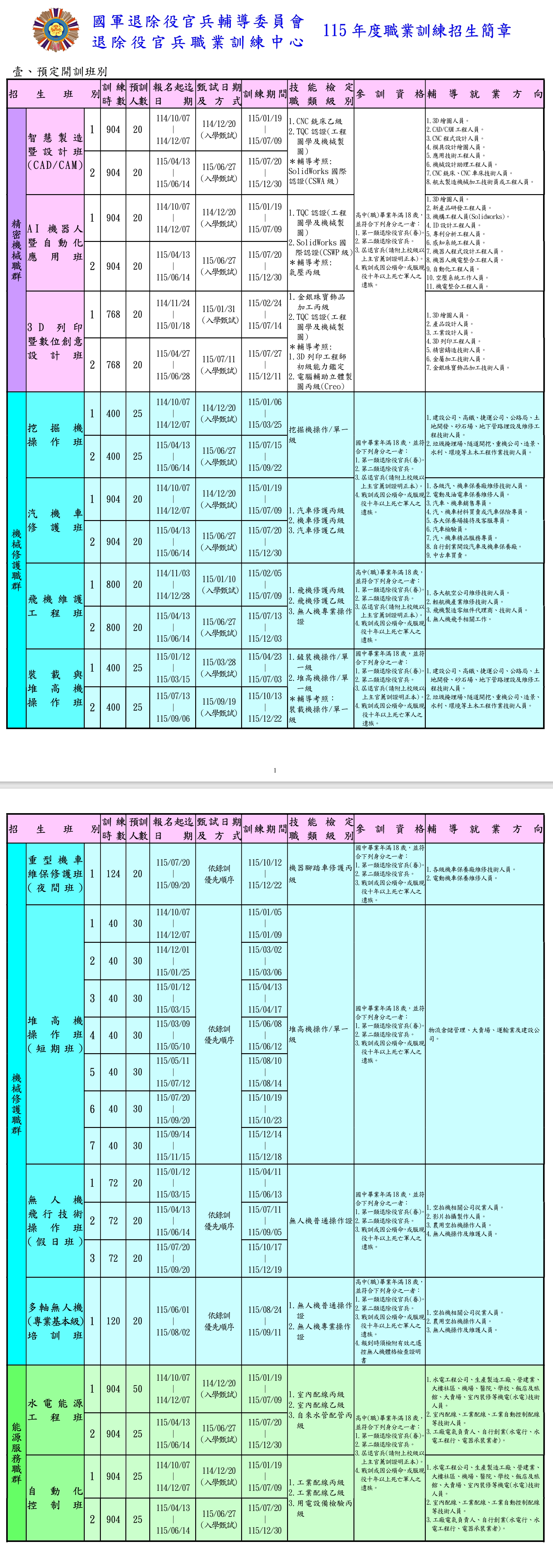 115年輔導會職訓中心課程 開始報名啦! 報名洽02-27699098分機542