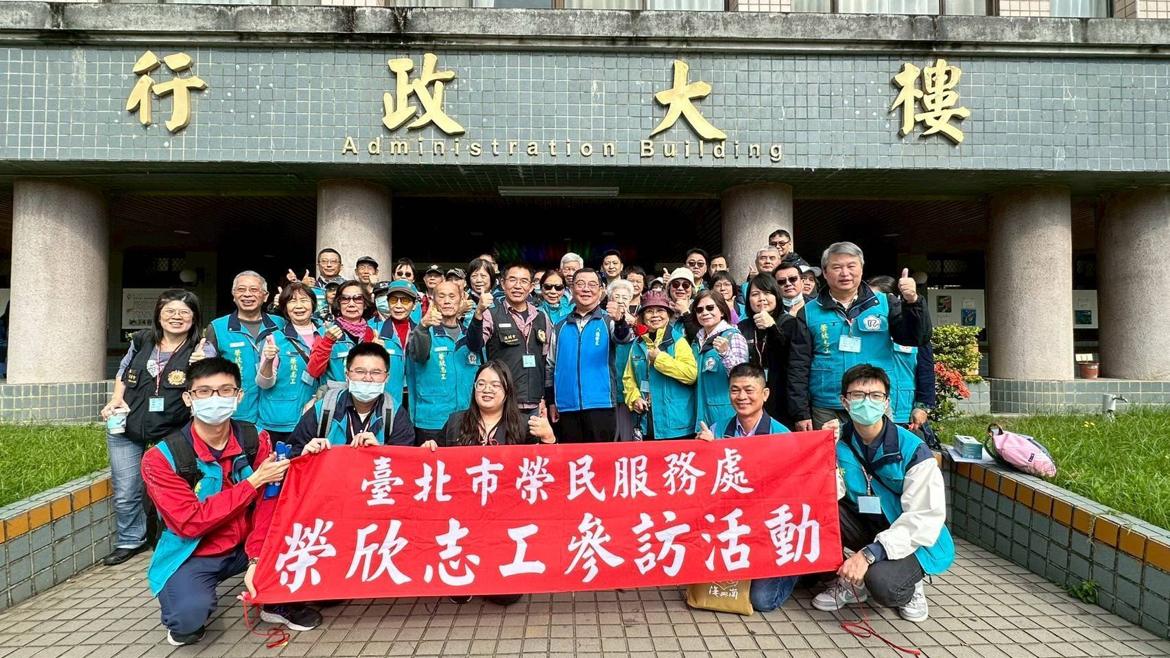 為深化志工服務品質及促進服務資源網絡合作,臺北市榮民服務處今(20)日舉辦榮欣志工參訪交流暨第四季榮欣志工服務聯繫會報,由處長黃信仁率領志工夥伴前往桃園八德榮譽國民之家參訪,宣導輔導會政策、分享服務經驗,並至高鐵探索館等地進行環境教育體驗,透過實地走訪與交流互動,提升志工整體服務量能。 處長黃信仁詳細瞭解八德榮家住民的居住環境、餐食供應與照護模式,並感謝榮家主任酆世俊、副主任程釋鋒、社工師與全體工作人員的協助與用心照顧,藉由此次參訪,有助雙方未來在勸導高齡獨居榮民入住及個案轉銜、資源串聯上更加順暢,亦強化榮民長者的照顧支持體系。 對於年度榮欣志工們的優異表現,處長黃信仁也給予高度肯定,其中今年在衛生福利部志願服務獎勵中,臺北市榮服處共有4位榮欣志工榮獲金牌、2位獲銀牌、4位獲銅牌,其中金牌獎之服務時數累計達8,000小時,令人由衷敬佩。同時,處長向志工們說明115年起照護高齡榮民長輩的安心御老平台機制將全面實施,除分享大我退舍訪視志工的成功案例,鼓勵更多榮欣志工投入訪視服務,期盼大家持續以熱忱與關懷陪伴榮民眷,共同提供更優質、更有溫度的照顧。