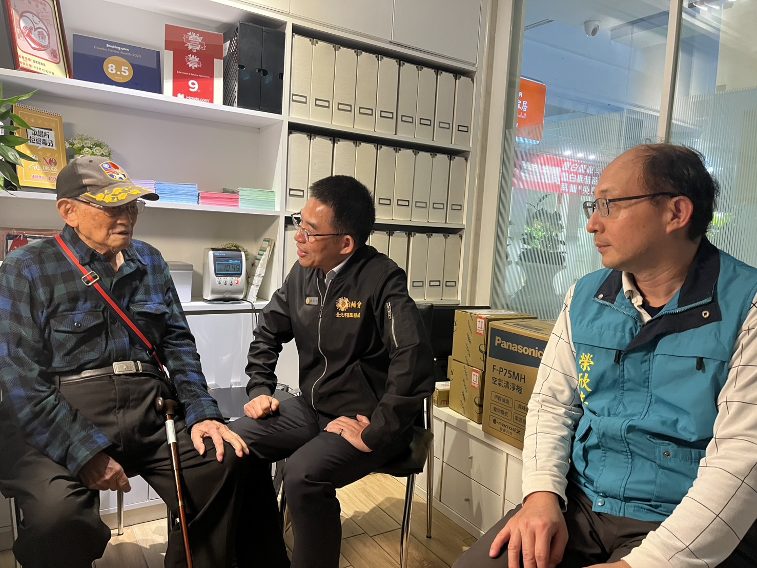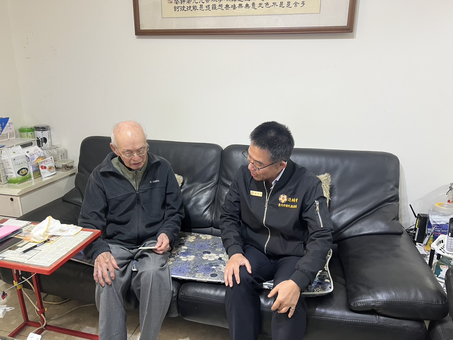 為關懷年長榮民生活起居與身體健康,臺北市榮民服務處處長黃信仁今(5)日前往北投區訪視四位高齡榮民長輩,除代表國軍退除役官兵輔導委員會嚴德發主任委員表達誠摯關懷與新春祝福外,並積極向榮民長輩勸導裝設輔導會遠距居家照顧系統及加入安心御老平台,維護居家照顧安全。 91歲周奶奶曾任教職,春風化雨、作育英才,為國家培育無數優秀人才,現由居服員定期到府協助採買與居家清潔,生活獲得妥善照顧;97歲聶爺爺早年投身海軍,保家衛國,退伍後更從事國際貿易工作,足跡遍及多國,拓展宏觀視野,現與配偶同住。為降低雙老獨居風險,已配合輔導會裝設遠距居家照顧系統,強化居家安全防護,為晚年生活增添一份安心保障;96歲梁老師曾任政戰學校教授,長年致力軍事教育,在其悉心指導下,培育出許多國軍優秀將領,桃李滿天下,令人敬仰;82歲李奶奶雖為獨居生活,但平日與友人往來密切,生活充實且富有人情溫度,展現樂觀開朗的人生態度。 處長黃信仁分別一一向榮民長輩說明獨居長者常面臨在家健康狀況臨時出現問題,無人可提供協助。輔導會為因應現今高齡社會,獨居人數逐年攀升,勸說安裝遠距居家照顧系統,該系統除有防跌偵測,更有緊急回報按鈕可在高齡長輩需要協助時,能即時聯繫緊急聯絡人。周奶奶及李奶奶皆認同現今趨勢,並同意裝設遠距居家照顧系統,提升居家生活保障。此外,也鼓勵榮民長輩及照顧家屬踴躍參與輔導會推廣的「安心御老平台」。該平台建構專業端、照顧端與家屬端即時回饋機制,能更迅速掌握並回應年長榮民健康狀況,同時整合多院就醫與慢性處方資訊,減少奔波往返的不便,並透過風險預警與訪視支援機制,提供更周全完善的照護服務。