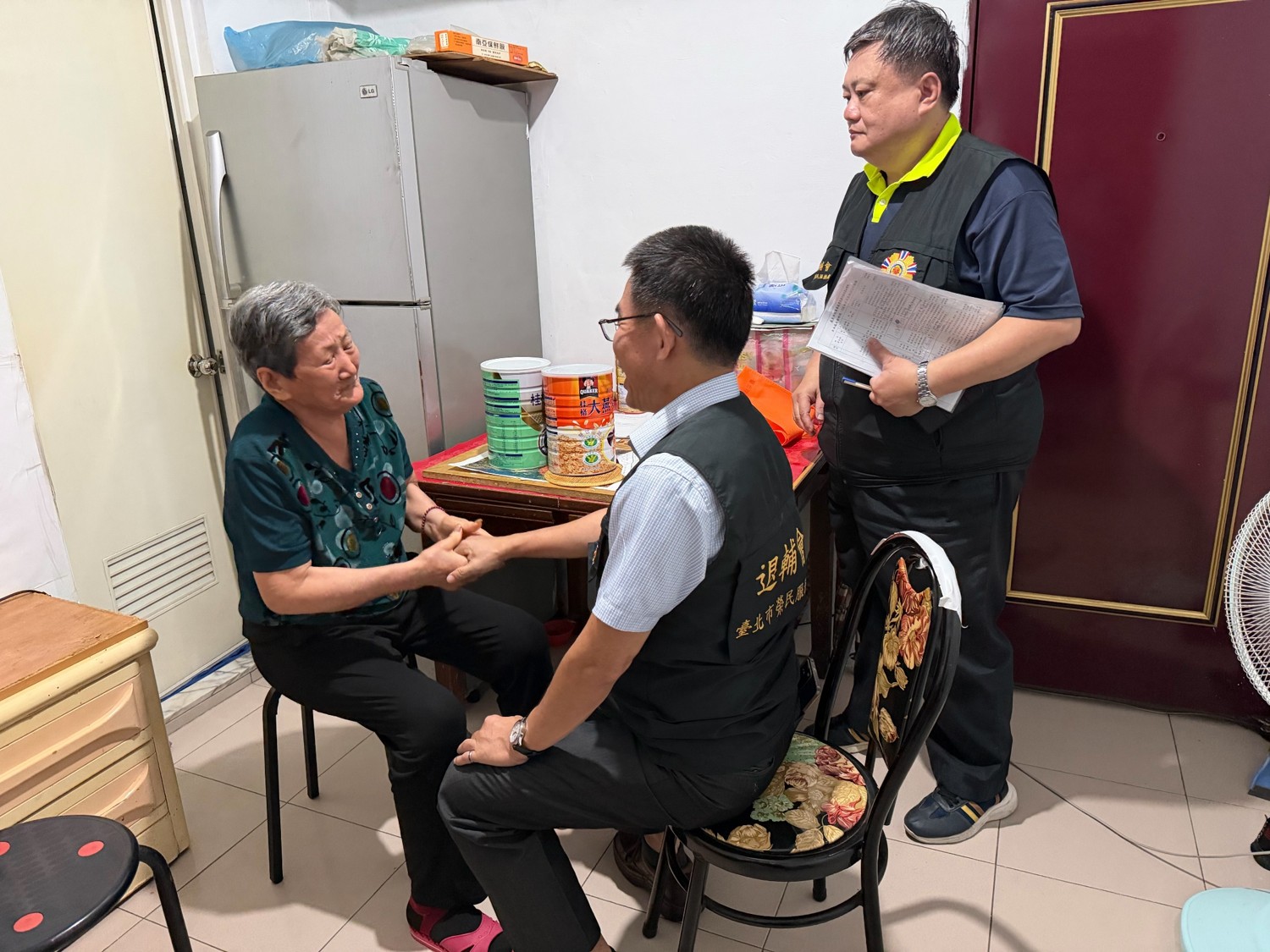 臺北市榮民服務處處長黃信仁於今(22)日上午偕同輔導員及社區服務組長,前往萬華區探視高齡榮民及眷屬,轉達輔導會主委嚴德發關懷之意,並同時說明「安心御老平台系統」及「遠距居家照顧系統」,強化即時守護與照護安全。 本次訪視個案多屬高齡且具不同照護需求。111歲張爺爺與配偶相互扶持、同住生活,家中氣氛溫馨,日常由配偶細心照顧,並有居服員定期到宅協助,讓生活維持穩定與規律;84歲陳奶奶獨居於社區中,雖具低收入身分,仍保持過去投入榮欣志工的熱忱與開朗性格。另81歲獨居武奶奶,具有中低收老津身分,生活起居有居服員照顧,榮服處亦持續關懷其身體狀況與生活需求,適時提供協助,使其能安心在熟悉環境中生活,維持基本生活品質與尊嚴。其中,張爺爺、陳奶奶及武奶奶均對輔導會安心御老平台功能深表認同,張爺爺配偶更加入家屬端,希望為自身安全再添一層保障。 黃信仁處長表示,為降低高齡榮民眷發生孤獨死的風險,後續將精準風險分類評估,避免潛在風險人員被遺漏,透過更完整的評估機制,全面掌握長者生活與健康狀況;同時擴大設置遠距關懷與緊急求救設備,結合地方政府資源,提高突發狀況的應變速度。醫療方面,結合醫師與個管師定期關心健康、提供衛教,也加強第一線人員訓練,讓異常狀況能及早被發現,讓長者在熟悉環境中也能安心生活。