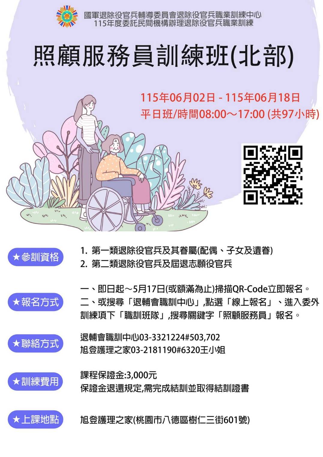 【委外招生資訊】 輔導會職訓中心委外班【照顧服務員培訓班(北部)】平日班 熱烈招生中,趕快來報名唷~~~! 🌸🌸 🐞訓練地點:桃園市八德區樹仁三街601號(旭登護理之家) 報名相關資訊請詳看招生海報↓↓↓↓↓↓↓↓↓↓↓↓↓↓↓ ★職訓中心報名網址:https://reurl.cc/1XgRaD ★洽詢電話:新北市榮民服務處02-29530844分機167鄭小姐