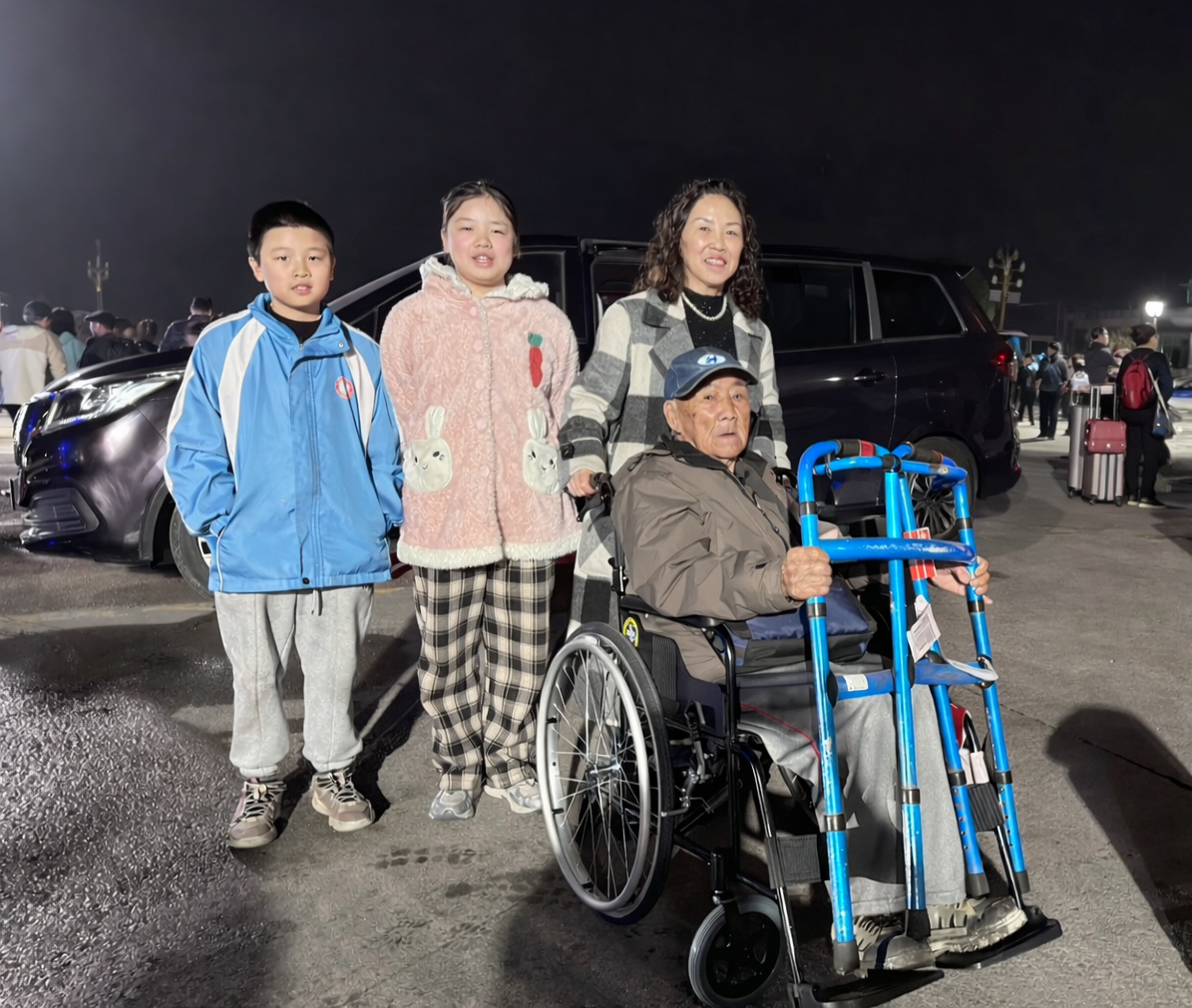 大陸來台榮民楊伯伯,過年期間與在大陸的女兒聯繫,表達自己年事已高,對家鄉有所思念,女兒也想念父親,新北市榮服處輔導員及社區組長一同協助楊伯伯圓夢,完成落葉歸根的心願。 日前本處社區組長及榮欣志工自淡水陪同伯伯前往機場送行,協助伯伯順利搭機,並返回大陸貴州故鄉,女兒及孫子女都開心地迎接伯伯,楊伯伯及家人們對於榮服處的關懷與協助感到十分暖心。