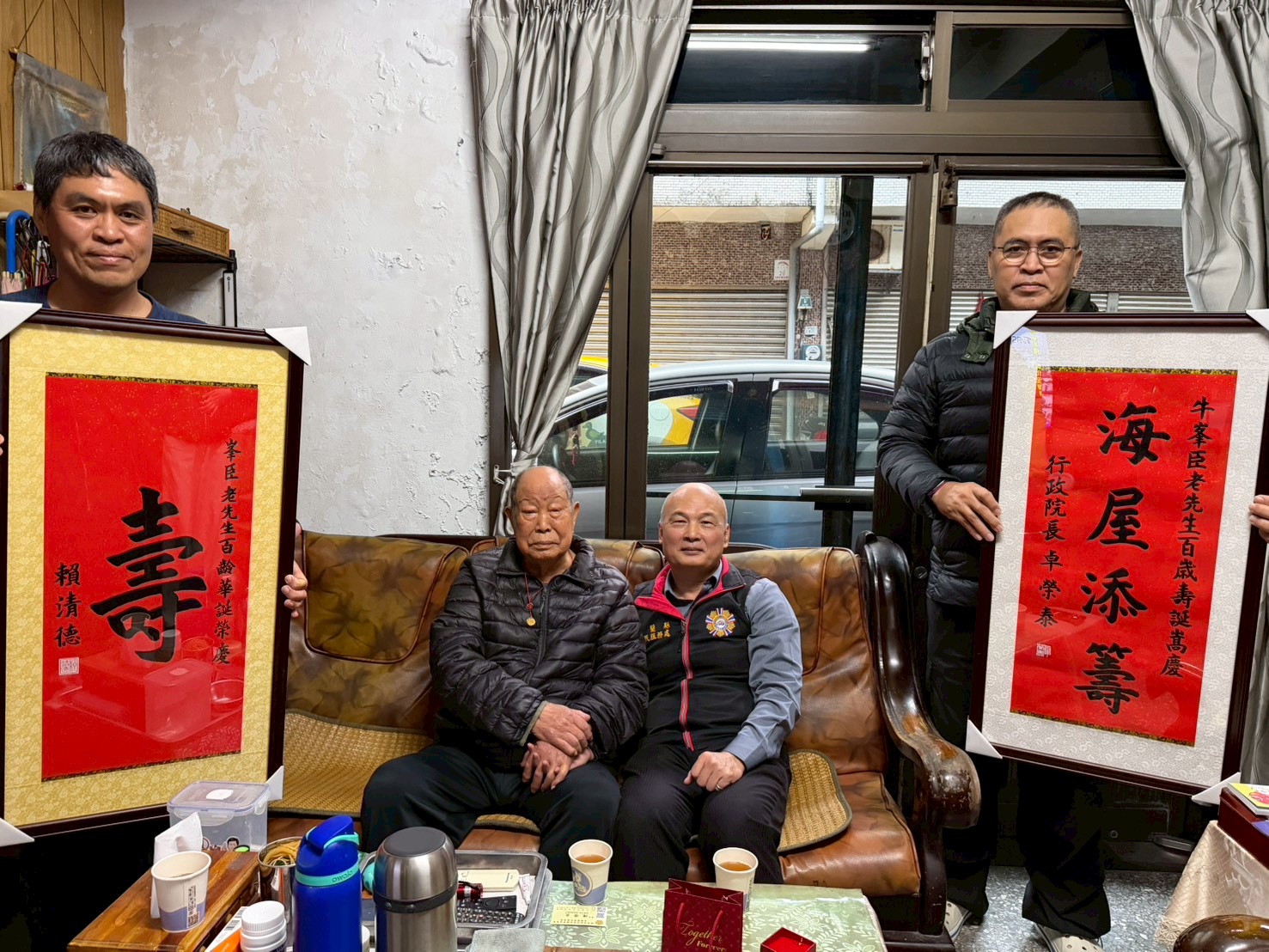 宜蘭縣榮民服務處陳學良處長及榮欣志工等為榮民牛峯臣歡度百齡華誕