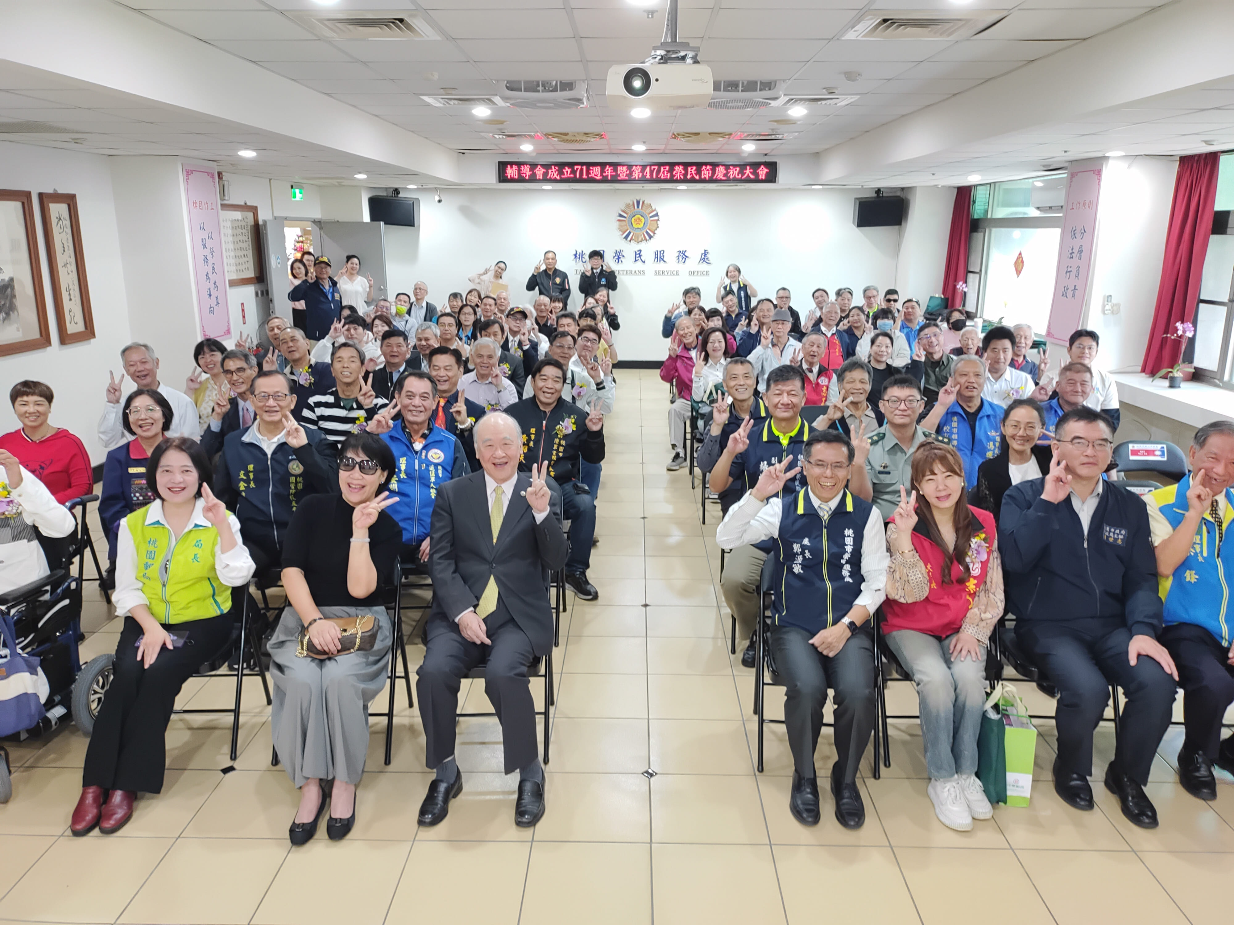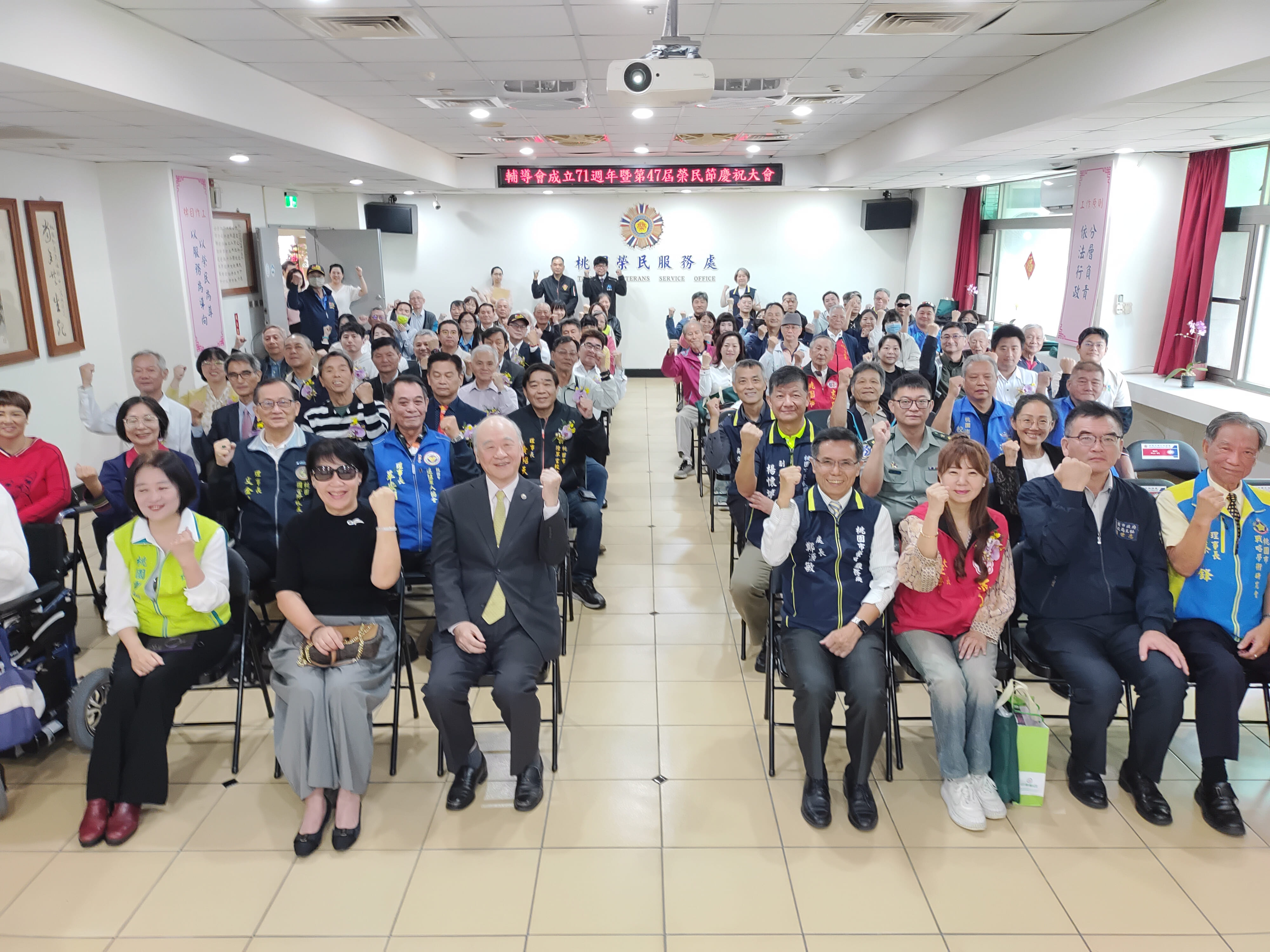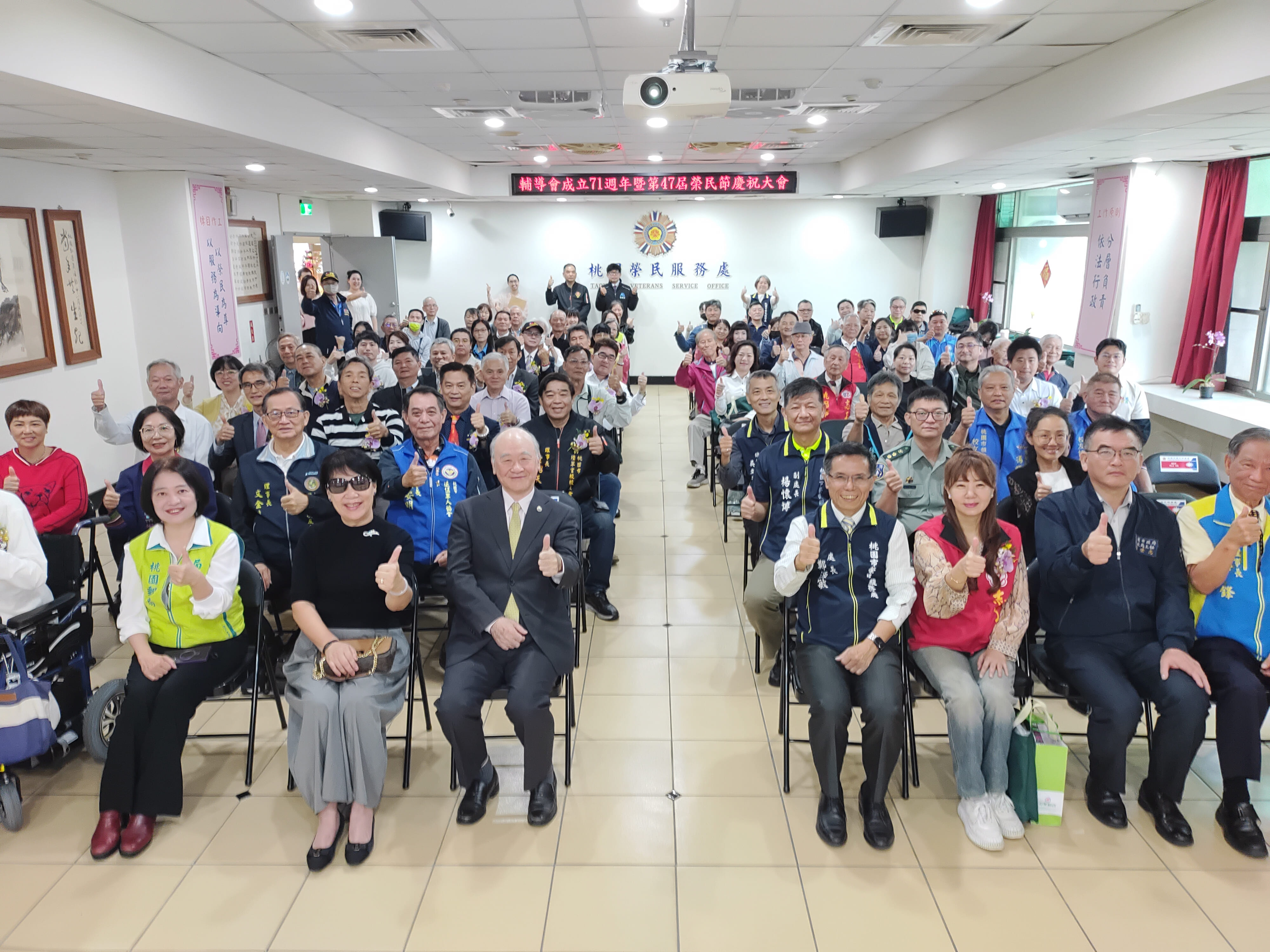 為感念並彰顯榮民前輩對國家社會之貢獻,桃園市榮民服務處10月29日舉辦「慶祝輔導會成立71週年暨47屆榮民節大會」及慈湖謁陵健行活動,由處長鄭源敏主持,邀請曾金陵前主委、桃園市政府代表、桃園郵局康嘉芳局長、桃園市戰略學會蔡鋒理事長、桃園市中央軍事院校校友會李東成理事長及退伍軍人社團代表等貴賓出席共襄盛舉,本次活動以「頌讚榮耀、服務用心」為主題,透過慶祝大會表揚榮民楷模、績優服務人員、貢獻績優及進用退除役官兵績優企業等,展現「忠貞、團結、關懷、誠樸、開創」之榮民精神。 榮民節是一個驕傲的日子,本次慶祝大會由舞耀歡騰欣欣向榮表演及林少方老師賽馬組曲演奏揭開序幕,接著欣賞「戰爭無情、和平無價」微電影,慶祝大會就在優雅的頒獎樂中,頌讚著23位楷模的優良事蹟,首先6位榮民楷模雖然褪去了戎裝,仍然競競業業的付出,長期熱心社會公益、急公好義,投身社區各項活動,造福人群;其次5位績優服務組長,秉持榮民在那裡,服務在那裡的目標,充份發揮愛心、耐心、同理心的精神,彰顯個人對退除役官兵貢獻;續頒發9位先進對於榮服處貢獻績優獎項,藉由表揚彰顯渠員投入社會,在有能力之餘,還不忘照顧榮民眷,其無私奉獻之精神,值得效法;最後頒發3家進用退除役官兵績優企業,表彰企業家積極進用退除役官兵投入職場之用心。大會圓滿結束處長偕同青壯榮民先進參加慈湖蔣公靈寢謁陵及健行活動,緬懷先總統蔣公對國家及榮民貢獻,格外有意義。 鄭處長表示,特別感謝我們獲獎的榮民在工作及家庭領域中,秉持愛心與耐心,無怨無悔對國家社會貢獻及付出,為時下社會注入感動的正面能量;希望藉由今天的榮民節慶祝表揚活動,提醒社會各界人士,能夠深切感念榮民過往對國家社會的貢獻及無私的持續付出,並繼續傳承愛護家園的使命,讓這片土地生養不息。 相關照片