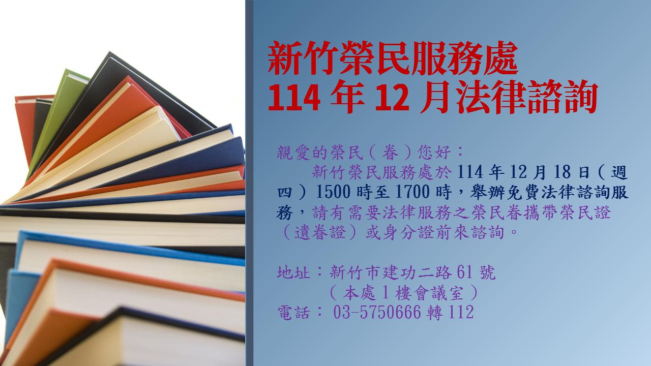 114年12月份法律諮詢時間為12月18日(四)下午1500