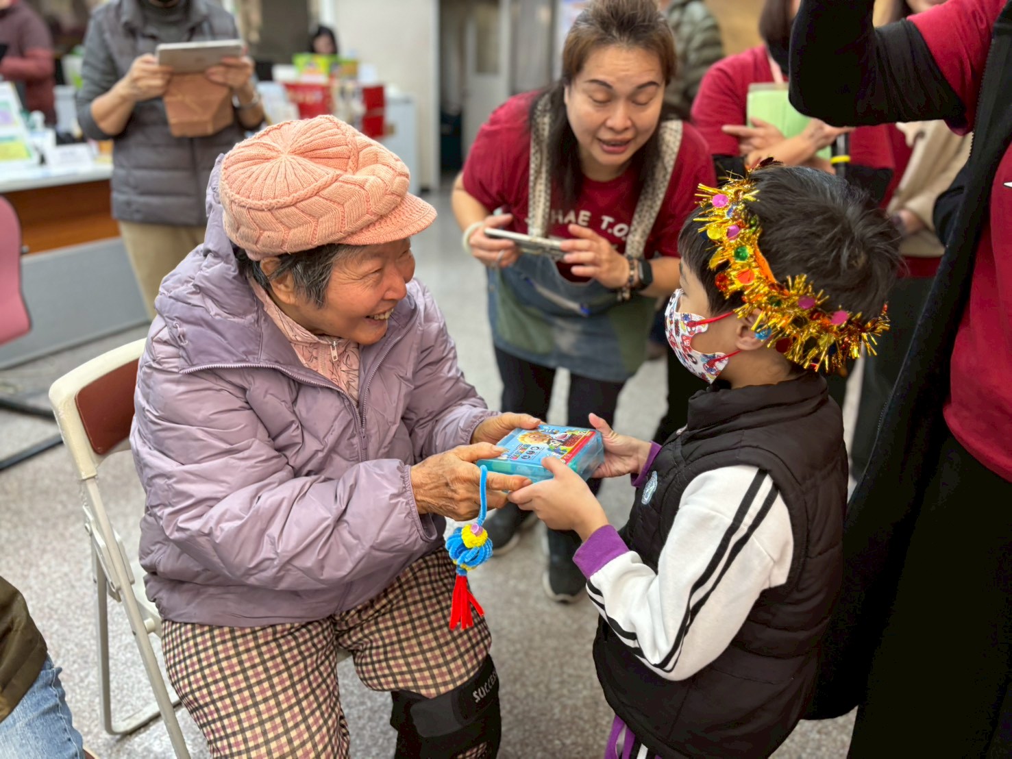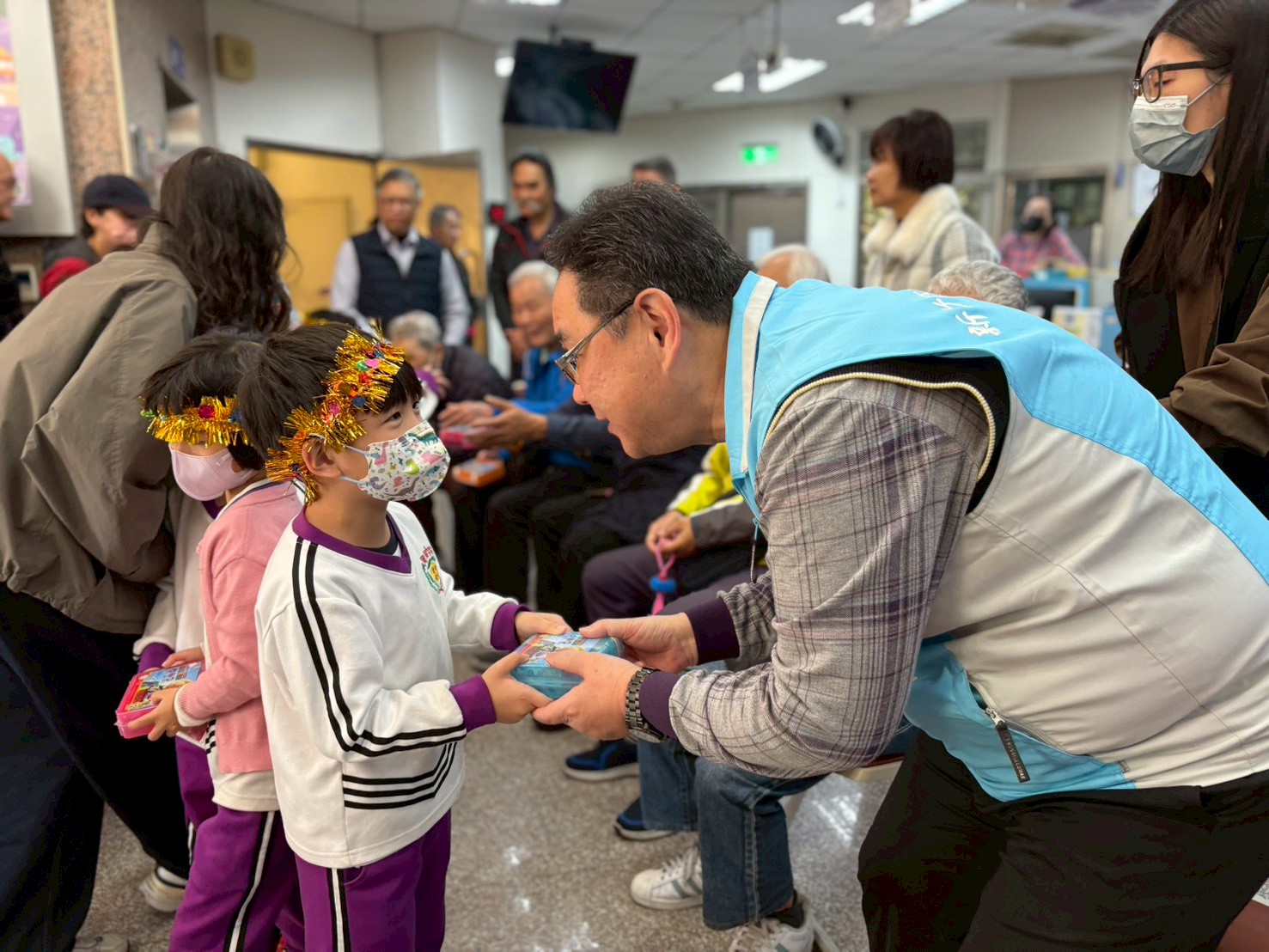 農曆馬年春節將至,象徵奔騰向前、福氣滿載的喜慶氛圍逐漸瀰漫社區。新竹榮民服務處今(15)日迎來一群充滿活力的「小福星」,好鄰居國立清華大學附設實驗國民小學附設幼兒園,由校長李佳蓮率領教師、小朋友、志工及家長一行約60人,前往榮服處向榮民長輩拜年,以純真的笑容與熱情祝福,為長輩們送上最溫暖的新春問候。活動現場洋溢著濃濃年味,孩子們用稚嫩又響亮的聲音,說著一句句吉祥拜年話,並搭配活潑可愛的動作表演,祝福爺爺奶奶馬年行大運、身體健康、福氣滿滿。童言童語與歡笑聲此起彼落,讓榮民長輩們彷彿回到兒孫繞膝、含飴弄孫的幸福時光,臉上不禁露出燦爛笑容。