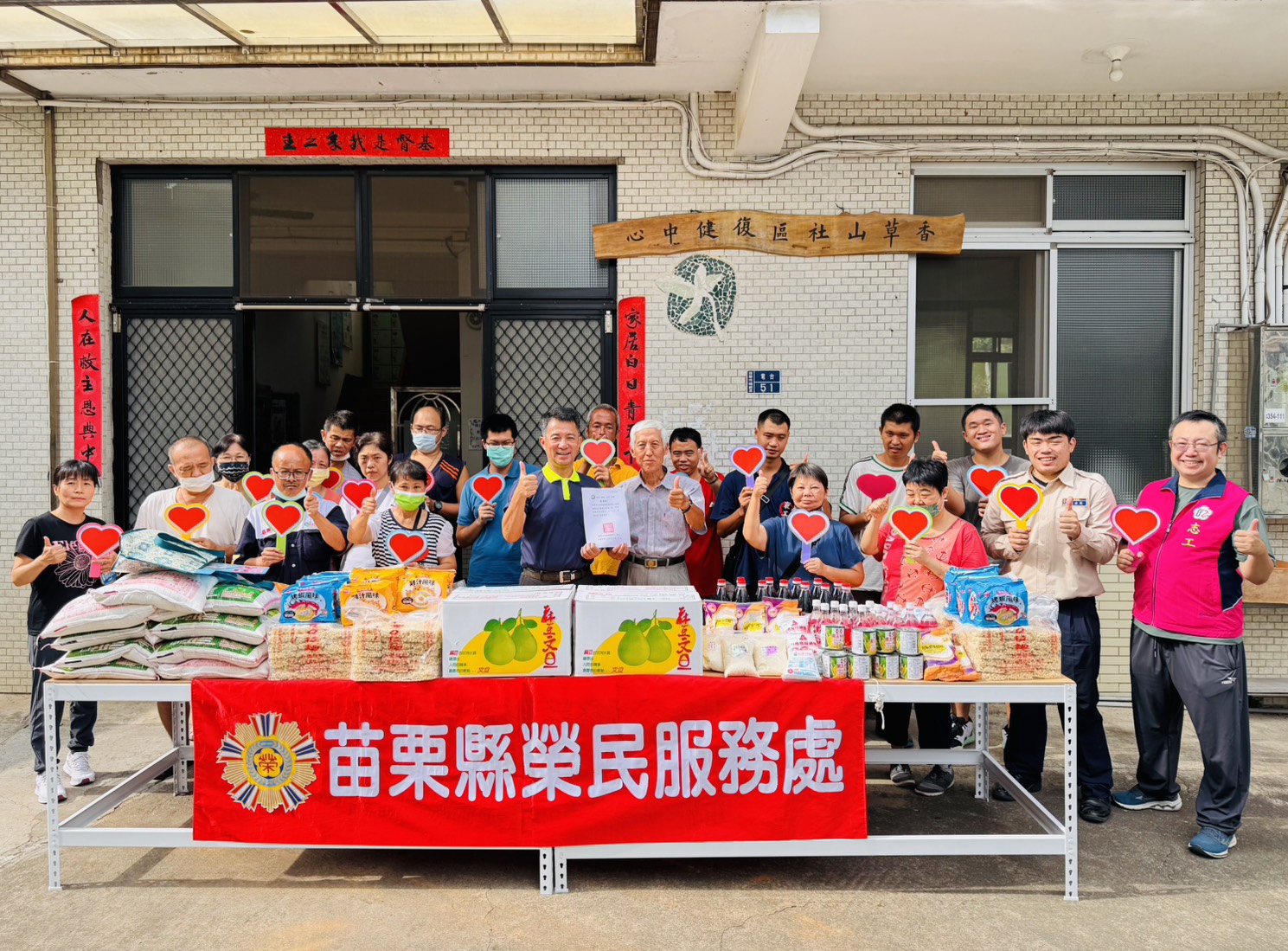 中秋佳節將近,苗栗縣榮民服務處為使榮民眷家庭能安心過節,特別將各界善心人士及團體所捐贈之文旦柚、食物箱及平安米等物資,由陳立中處長偕服務團隊、榮欣志工及替代役男,送愛至苗栗縣香草山社區復健中心、廣福居康復之家及桃園仁愛之家附設苗栗老人養護中心,由各長照機構經營者代表受贈,讓溫暖與祝福傳遞到社會每一個角落。 苗栗縣榮民服務處陳處長表示,感謝社會各界長期支持榮民眷服務工作,踴躍捐輸愛心物資,秋節前夕將這份關懷化為實際行動,不僅減輕弱勢家庭生活壓力,也讓榮民眷感受到社會的重視與陪伴,將持續串聯社會資源,積極照顧榮民眷,並與地方社福團體攜手,營造互助友愛的溫馨氛圍。 苗栗縣榮服處年度秋節物資捐贈活動,秉持「榮民在哪裡、服務到哪裡」及「榮眷在哪裡、關懷到哪裡」的目標,賡續積極鏈結各社會組織資源,擔任地區資源整合平台,透過跨區聯繫、溝通及參與,建立高效指揮應變機制,擴大資源整合範圍,及時精準地投入服務,成為輔導會應變前進指揮中心,並加強與地方仕紳、優秀企業代表、退伍軍人社團及善心團體的聯繫,使福利服務推展至苗栗地區榮民眷身上。 圖1:苗栗縣榮民服務處陳立中處長(前排左5)捐贈秋節物資,由苗栗縣香草山社區復健中心經營者郭孝義(前排右5)代表受贈。 圖2:苗栗縣榮民服務處陳立中處長(前排左5)捐贈秋節物資,由廣福居康復之家經營者馮偉忠(前排右5)代表受贈。 圖3:苗栗縣榮民服務處陳立中處長(左3)捐贈秋節物資,由桃園仁愛之家附設苗栗老人養護中心張榆芳主任(右3)代表受贈。