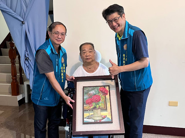 為慶祝榮民節,臺中榮民總醫院及臺北榮民總醫院新竹分院將於10月盛大舉行文物及藝術品展覽,近日由苗栗榮服處柯長榮副處長偕王國良總幹事及同仁一行,特別感謝榮民書法家陶如朗、口足畫家童福財慷慨出借,讓臺中榮總及臺北榮總新竹分院展覽更具歷史價值與藝術品味。 苗栗榮民服務處柯長榮表副處長示:「我們衷心感謝榮民陶如朗書法家及童福財口足畫家支持,他們書畫作品不僅富有藝術價值,更展現榮民家族情感與歷史記憶;這些作品無聲地訴說著榮民家庭堅韌與不屈,也讓我們更加珍惜今日和平與安定」。 陶如朗出借書畫作品,展現榮民家族對文化藝術深厚造詣,而口足畫家童福財所創作口足畫,則將勇氣與創意融入其中,令人動容;這些作品出借,不僅讓當代人能夠欣賞這些藝術佳作,更讓我們對榮民所經歷歷史背景有了更為深刻理解。