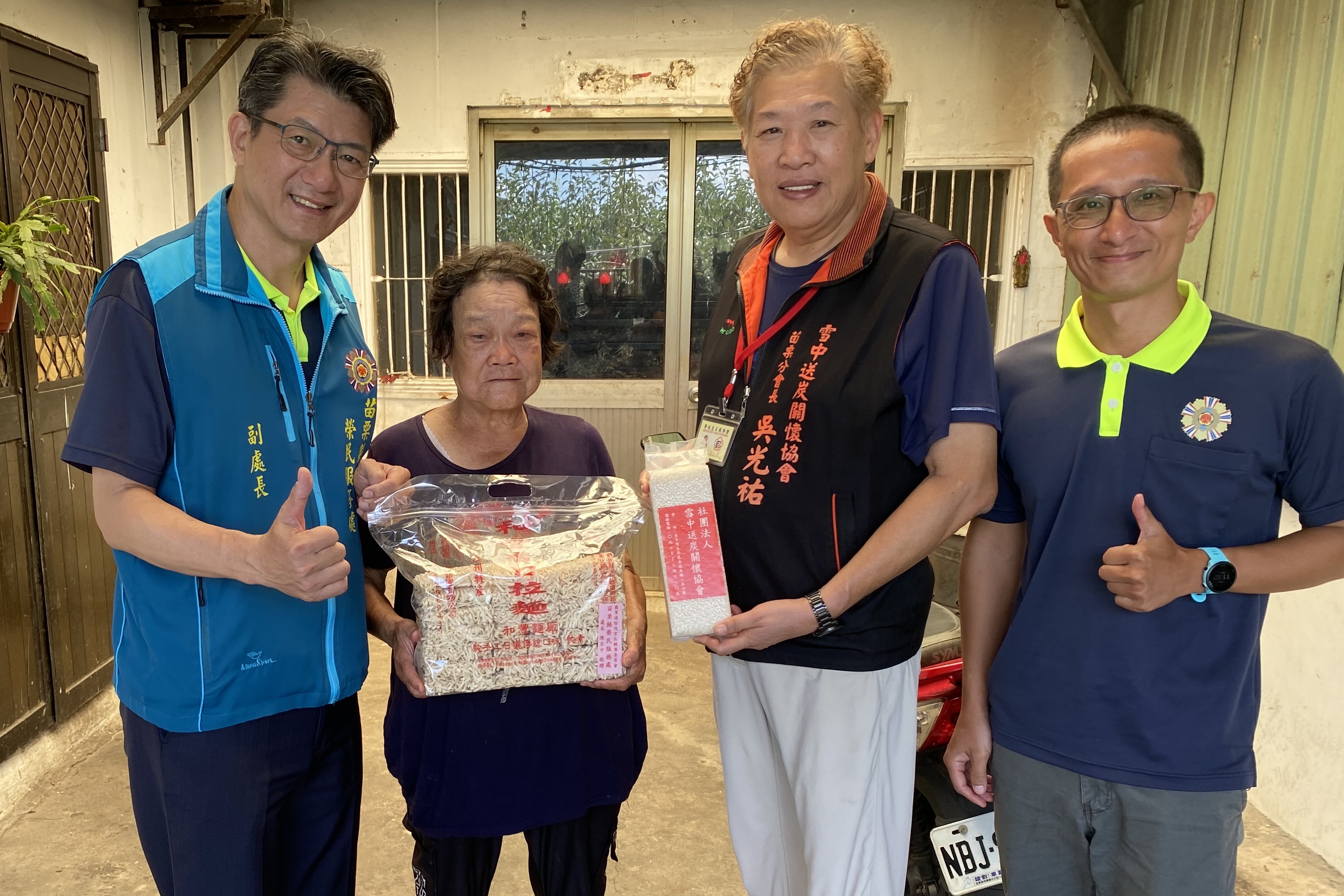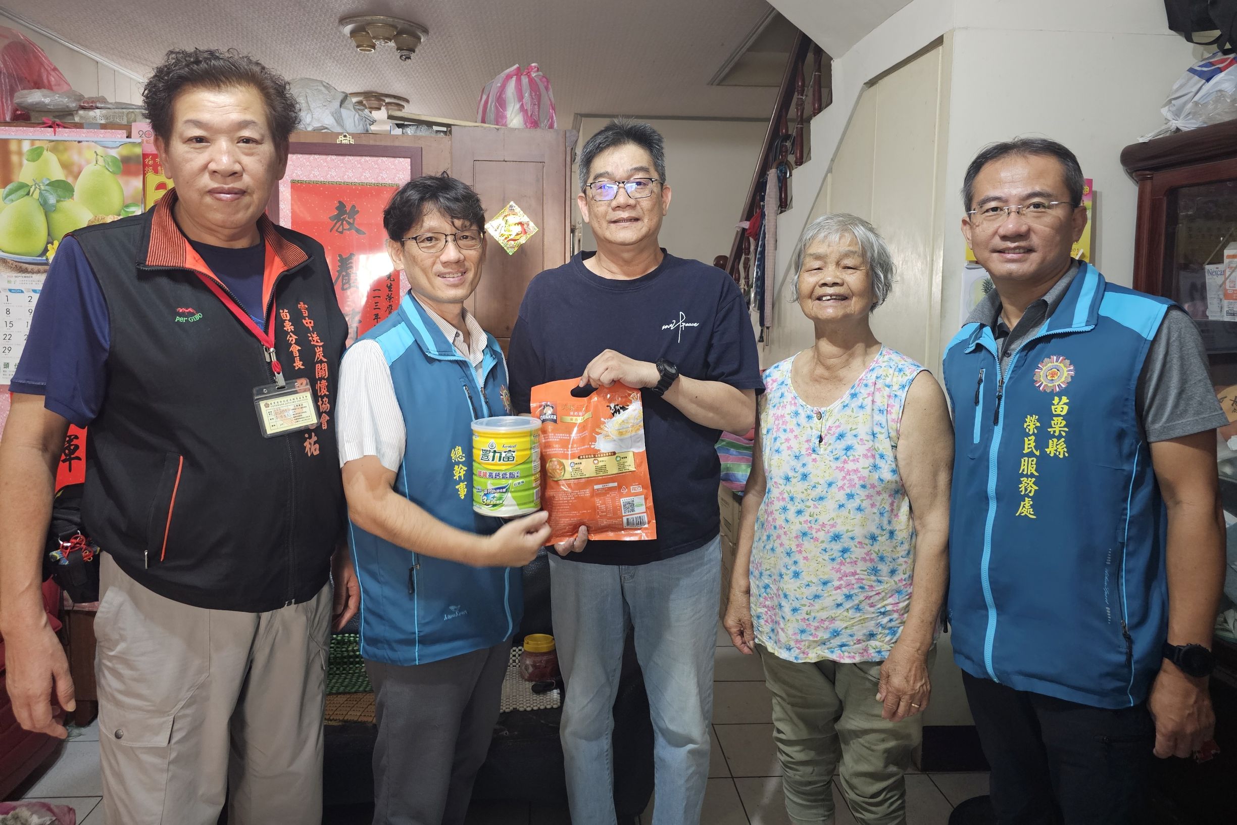 時值秋節前夕,苗栗縣榮服處帶著社團法人雪中送炭關懷協會、頭份石觀音寺及造橋玄明宮等善心團體物資,本著輔導會關懷榮民眷宗旨,由榮服處服務團隊偕同雪中送炭協會苗栗分會長吳光祐、陸海空軍相互關懷協會苗栗分會長黃幸一等,關懷慰問轄區年長榮民眷,感念其堅定愛國信念、守護國家安全,善盡國民保家衛國義務及責任,敬祝健康如意。 社團法人雪中送炭關懷協會周三貴理事長鏈結「亞馬遜釣蝦場」、「真觀心儀典股份有限公司」及「玄一堂命相館眾信大德」,共同捐贈中秋物資及活動善款,發揮雪中送炭精神,傳遞善的能量。頭份石觀音寺林住持長期秉持觀世音菩薩慈悲為懷的精神,熱心公益不遺餘力,每年皆會準備普渡及寒冬送暖物資轉贈給需要幫助的家庭,造福更多的民眾。造橋玄明宮薛戴秋蘭宮主長期秉持玄天上帝慈悲為懷的精神,熱心公益不遺餘力,已連續23年準備普渡民生用品及平安米,轉贈給需要幫助的社福機構及清寒家庭,造福更多的民眾。榮服處偕同善心團體代表走入鄉鎮社區致送物資,讓榮民眷感受到社會溫暖與關懷,對退輔會提供各項服務照顧均稱頌不已。 榮服處陳處長表示,依退輔會「傳承榮民精神,追求卓越服務,永續組織發展」願景,各級服務人員以「榮民在哪裡,服務到哪裡;榮眷在哪裡,關懷到哪裡」為目標,秉持輔導會「忠貞、團結、關懷、誠樸、開創」核心價值,持續鏈結社會資源,讓榮民眷感受到輔導會的用心。 相關照片