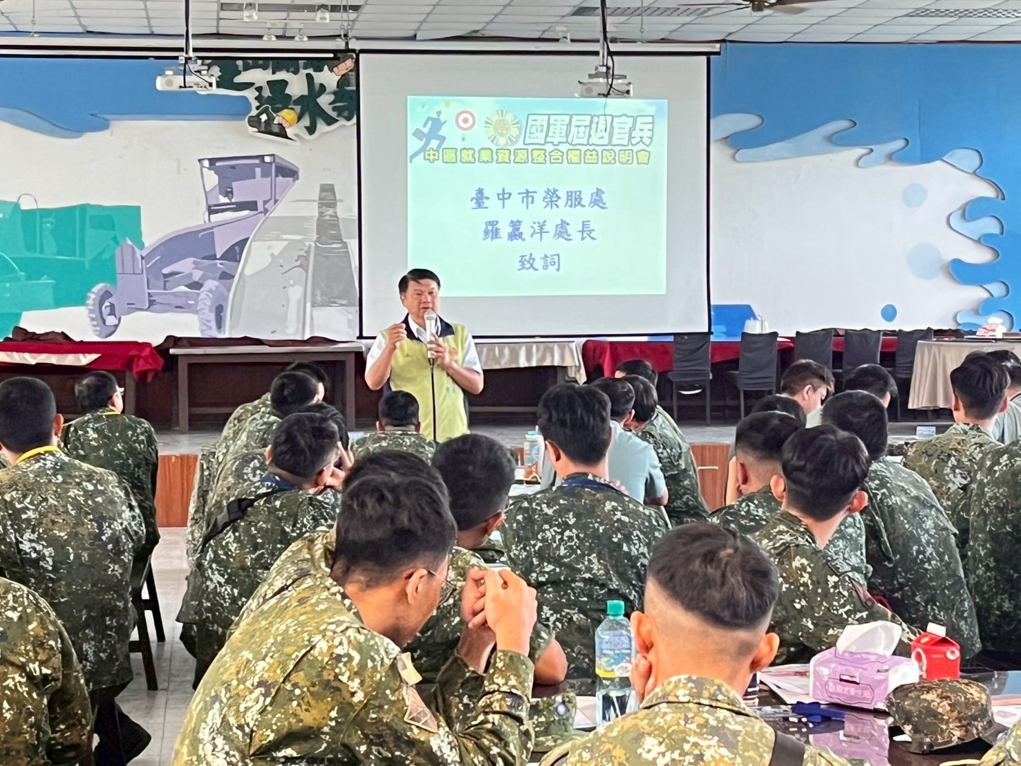 臺中市榮民服務處結合彰化縣、南投縣等榮服處及陸軍第十軍團,於今(24)日在陸軍52工兵群光隆營區辦理「114年度第3季中部地區國軍志願役屆退官兵權益說明會及現場徵才媒合活動」。會中介紹退除役官兵就學、職訓、就業等各項權益,實施職業適性評量及團體解說,並安排原住民族委員會中彰投區就業服務辦公室、臺中市就業服務處、勞動部勞動力發展署中彰投分署及各焦點廠商介紹相關就業輔導及職場資源,讓屆退官兵充分瞭解目前社會脈絡與薪資架構,不論是準備退伍或是持續為國家服務,均能建立一個明確目標。確立自己生涯規劃,邁向人生新階段。 羅籝洋處長提醒現場與會屆退官兵,退伍對職業軍人而言,是一個人生中重要的轉捩點,確定要退伍時,務必要做好未來的職涯規畫,思考完善再退伍,不要冒然退伍,部隊與民間的薪資是有差異的,也提醒屆退官兵善用輔導會及各公部門就業輔導資源,透過進修學業及職業訓練,獲取專業學能,增加職場競爭力,積極進入就業市場穩定就業,開創人生事業第二春。 本次活動計有123位屆退官兵參加,活動除安排職業適性評量,協助屆退官兵依據個人意願規劃職涯方向外,會場亦邀請瑞士商弗克司台灣分公司、禾登豐精密科技、王品集團、天雋科技、大易橙科技、上緯興業、合隆電工、天工精密、青松健康及新光人壽等多家優質企業現場徵才共提供961個職缺,勞動部勞動力發展署中彰投分署、臺中市就業服務處及原民會中彰投區就服辦公室等單位到場設置服務櫃台,提供屆退官兵就學、就業及職訓多元化的選擇。