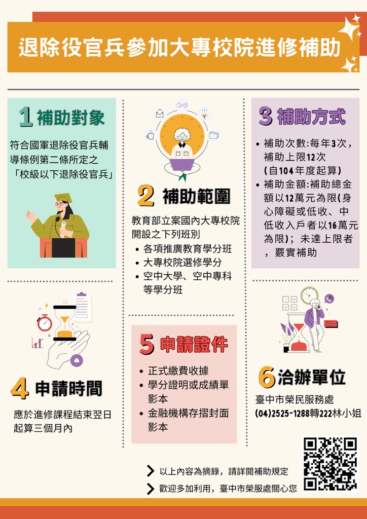 歡迎多加利用退除役官兵參加大專校院進修補助
