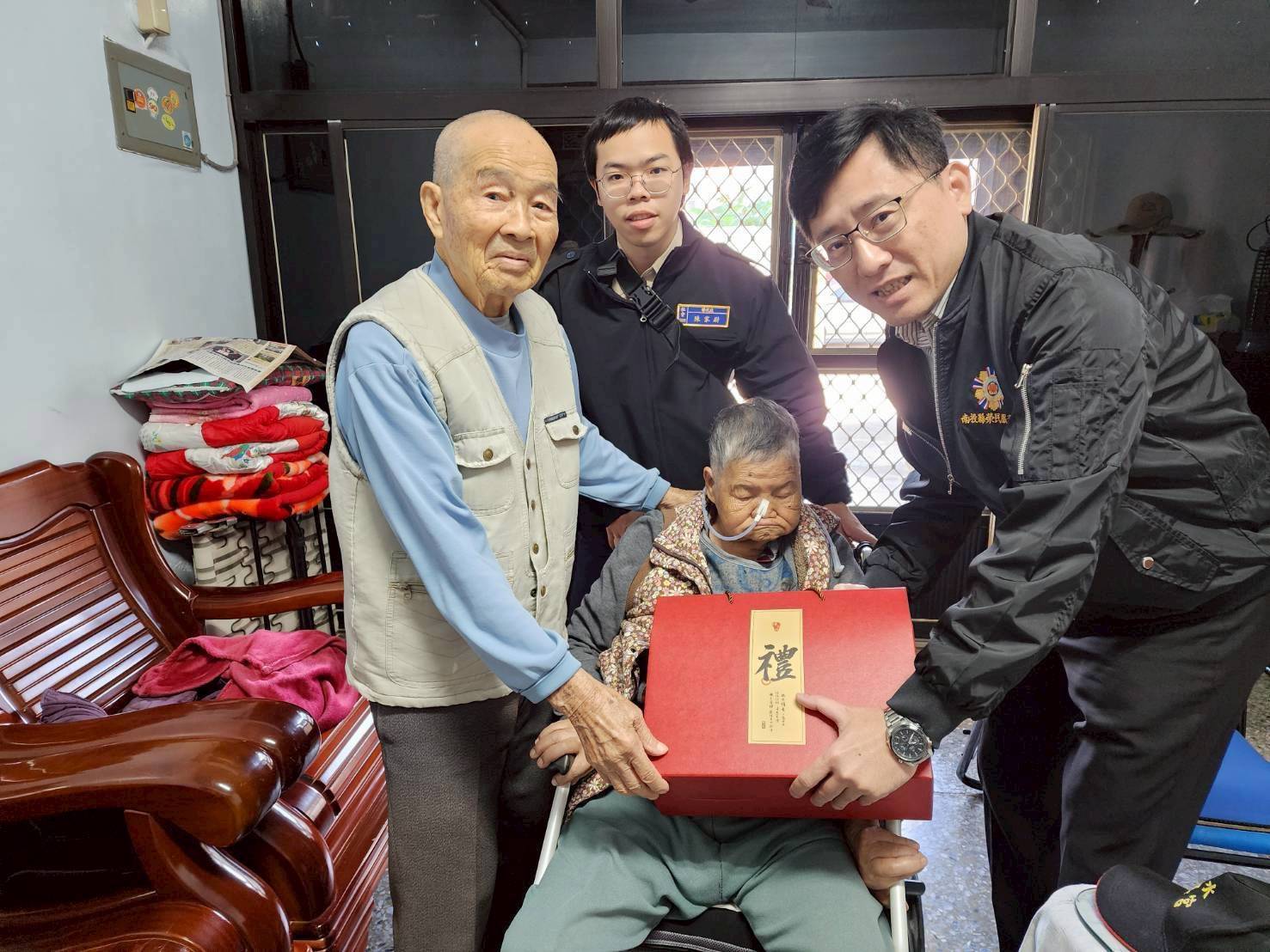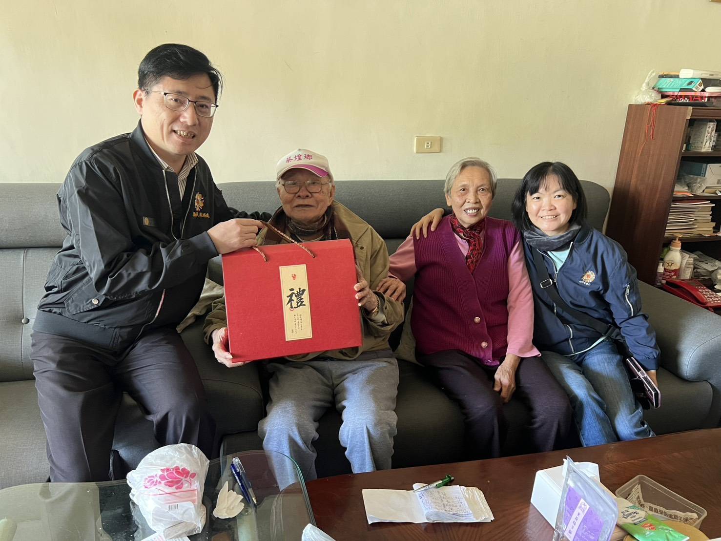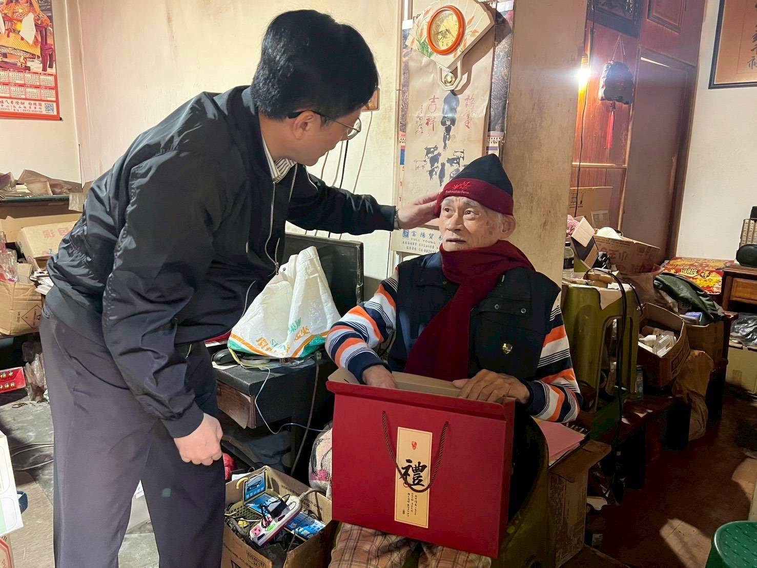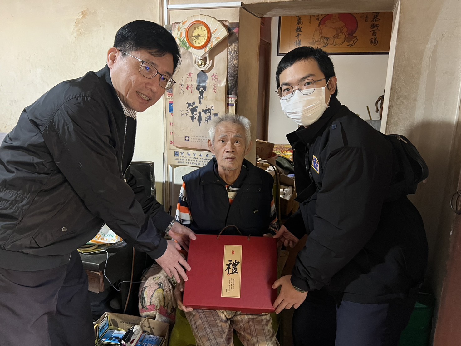 吳總幹事一行前往獨居榮民吳伯伯及雙老家庭龔伯伯夫婦等多位長輩家中,透過話家常與傾聽需求,關心他們近期生活狀況、健康情形及居家安全,並貼心提醒天冷應注意保暖、留意用火、用電安全,以降低居家意外風險,同時送上慰問禮品,讓長輩們感受到被關懷、被重視的溫馨。