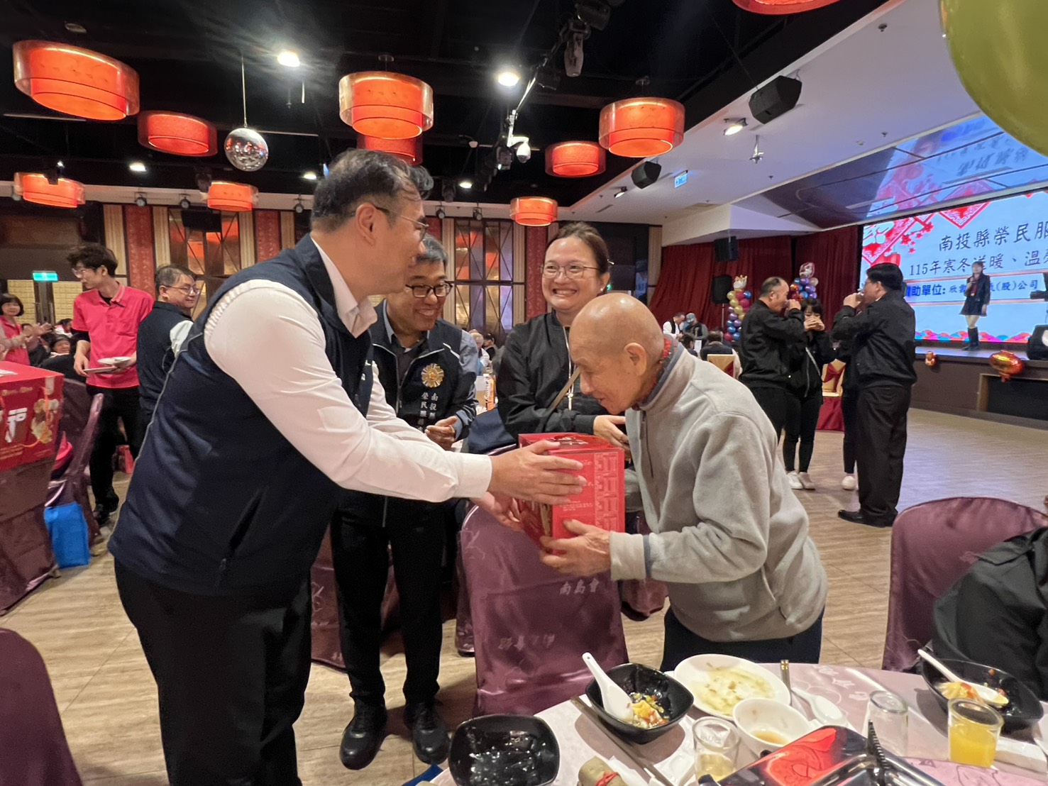農曆新年將屆,南投縣榮民服務處為使獨居榮民眷長輩、遠嫁來臺新住民家庭及榮民學子等提前感受年節氣氛與社會關懷,於今(6)日在南投市「南島婚宴會館」辦理「115年寒冬送暖、溫馨關懷活動」,與大家一起提前圍爐歡樂過節,活動穿插表演節目及互動小遊戲,並致贈春聯及民生用品等愛心物資,場面溫馨熱鬧。 本次活動出席人員達160餘位,包含榮民眷長輩、新住民家庭、國軍遺族代表、義務役傷殘官兵、榮民學子及榮欣志工夥伴等,另外協辦單位代表財團法人榮民榮眷基金會尹致珍副秘書長、南投郵局吳佳鴻局長、南投縣後備旅林憲軍旅長、更生保護會南投分會鄭家珍主任委員、南投縣政府吳秋福顧問、長順慈善協會石智升理事長、玉靈功德會羅月燕理事長及中部地區軍人社團代表等人也撥冗蒞臨共襄盛舉,使現場參加人員充分感受來自社會各界的關懷與祝福。 因2月份適逢各機關團體發放年終獎金期間,榮服處特別邀請南投郵局派員至會場進行防詐騙宣導,吳佳鴻局長親率3位同仁向榮民眷說明防詐騙注意事項,並致贈現場榮民眷家庭每戶禮盒一份,提供實際關懷與祝福。現場榮民眷收到禮物與實用資訊,均感到非常開心,活動氣氛溫馨熱絡,也增添了過年節慶的喜氣。 榮服處為使與會人員感受濃厚年節歡氣氛,本次活動特別邀請彰化知名表演團體「雅月齋國樂團」親臨會場演出。樂團以多首經典國樂曲目輪番演奏,包含喜氣洋洋的節慶樂曲及熟悉動人的懷舊旋律,並穿插傳統樂器合奏,樂聲悠揚、節奏熱絡,為現場增添濃厚年味;此外,表演團體亦演唱多首耳熟能詳的熱門歌曲,並與現場榮民眷互動同樂,帶動全場氣氛。精彩演出贏得在場人員熱烈掌聲,現場氣氛熱鬧溫馨,不僅溫暖了與會人員的胃,更溫暖了他們的心,每位榮民眷臉上均洋溢著歡樂笑容。 李毓錫處長於致詞中特別感謝本次活動所有的協辦與贊助單位,對榮服處的支持與對榮民眷的照顧,並表示春節前還會有一系列的社區關懷、榮家慰問與春節慰問金發放等行動,也希望有更多熱情、善心人士能投入關懷退除役官兵的行列。 最後,與會的榮民眷們享用了豐盛的午餐及領取主辦單位準備的愛心物資後,在榮服處李處長及同仁歡送下,依依不捨的離開,愉快地結束今日的活動;參與的人紛紛表示,希望每年都能持續舉辦如此溫馨、熱鬧的活動。