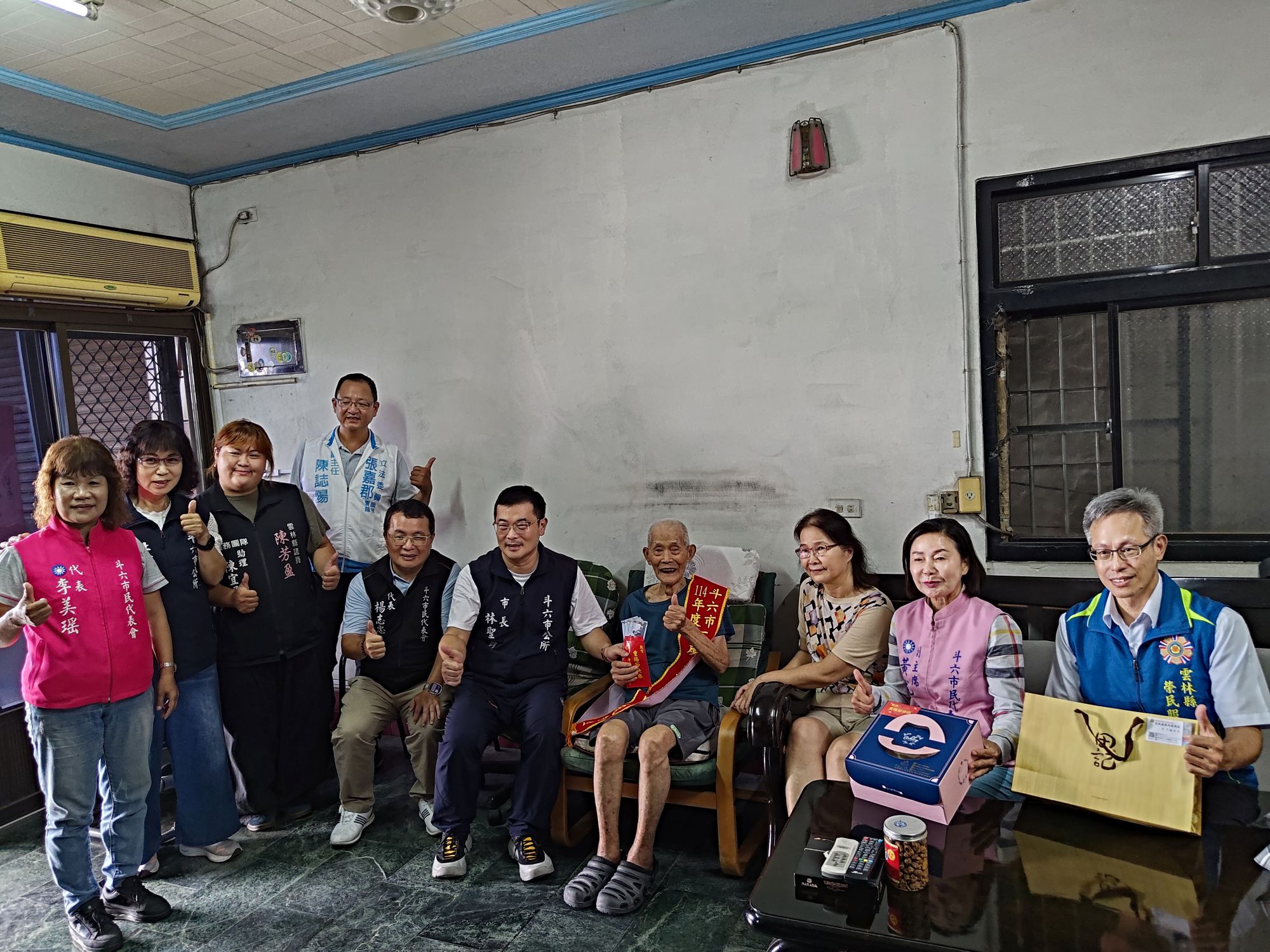 為弘揚重陽節尊老、敬老的傳統美德,並表達對榮民長輩的關懷敬意,雲林縣榮服處於重陽節前夕持續積極慰訪縣內年長榮民眷,日前蘇文玄處長陪同雲林縣張麗善縣長以及斗六市林聖爵市長等,一同到斗六市百歲榮民家中慰問,致贈重陽敬老禮金和養生禮品等賀禮,溫馨表達對縣內榮民長輩最誠摯的關懷與致敬,活動氣氛溫馨熱絡。 雲林縣榮服處蘇文玄處長表示,榮民前輩們在軍旅時期,為國家安全與社會穩定犧牲奉獻,是社會的寶貴資產,十分感謝張麗善縣長及林聖爵市長帶領的服務團隊,長期以來對雲林縣內榮民眷的服務照顧,本年度重陽節前夕並攜手本處訪慰百歲榮民,共同弘揚敬老以及尊崇榮民的精神。 而聯訪當天,張麗善縣長、林聖爵市長以及以蘇文玄處長等,皆對百歲榮民表達崇高的敬意,伯伯和家人們對此都十分窩心感動;諸如民國12年出生於甘肅省定西縣的百歲人瑞王天福伯伯,其歷經國共戰爭及台海823戰役等國家重要戰役浴血奮戰,另民國13年出生的謝發銀伯伯,亦曾參與國共戰爭,在時代背景下,並在手上刺上反共標誌宣誓愛國決心,百歲榮民這些為國家、社會付出的人生閱歷,展現出令人動容的精神,實在令人感佩,而他們生活中展現出「知足常樂」的人生態度,更是長壽且幸福美滿的首要秘訣。 雲林縣榮服處攜手雲林縣政府和斗六市公所,在重陽節前夕展現對榮民長輩的感謝與尊重,也藉此呼籲社會各界共同響應敬老、尊老的美德,關懷身邊長者,讓社會處處洋溢溫情,共同營造「老有所依、老有所樂」的幸福環境。 相關照片
