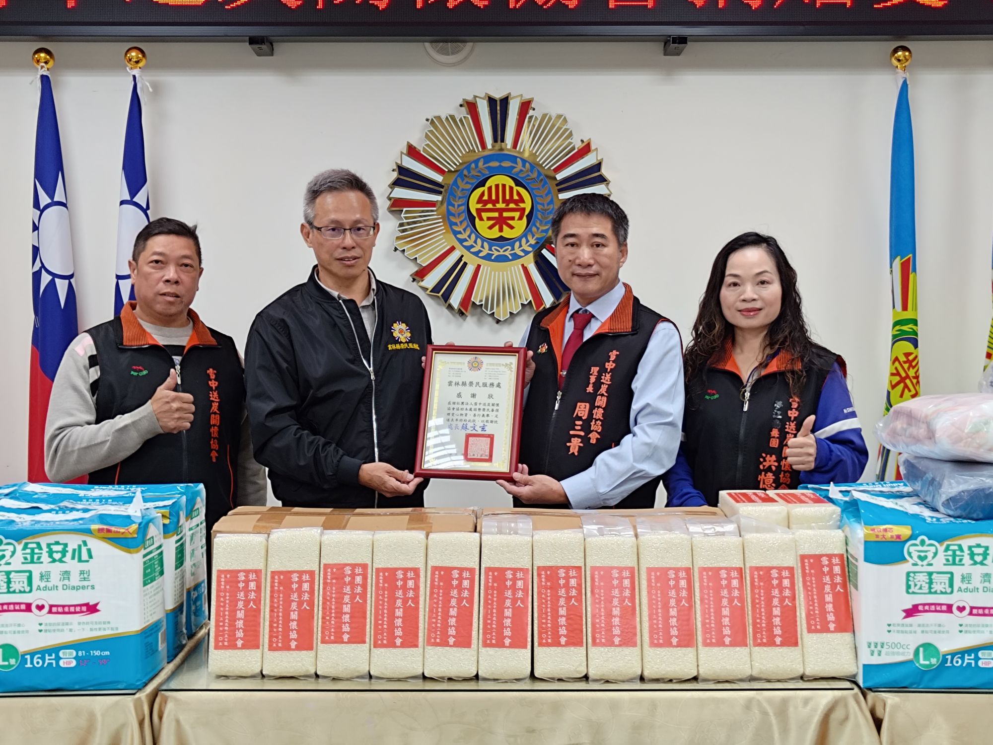 雲林縣榮民服務處感謝社團法人雪中送炭關懷協會捐贈成人尿布、真空白米一批,由蘇文玄處長偕同蔡榮源副處長、榮服處同仁代表受贈,並回饋感謝狀乙幀以表謝忱,共同為關懷榮民(眷)盡一份心力,並本著輔導會關懷榮民(眷)宗旨,將善心物資做最妥善運用,賡續由服務團隊轉贈雲林縣轄區清寒榮民(眷)家庭,讓他們能充分感受到社會滿滿溫暖氛圍。 社團法人雪中送炭關懷協會周三貴理事長率洪憶朝分會長及胡珠福關懷主任表示,此次在春節年前捐贈寒冬送暖物資,與雲林縣榮民服務處攜手關懷照顧清寒榮民(眷)家庭,同時發揮雪中送炭精神,傳遞善的能量。 雲林縣榮民服務處蘇處長表示,感謝協會關懷之意,秉持「榮民在哪裡、服務到哪裡」及「榮眷在哪裡、關懷到哪裡」目標,賡續積極鏈結各社會組織資源,擔任地區資源整合平台,透過跨區聯繫、溝通及參與,建立高效指揮應變機制,擴大資源整合範圍,及時精準地投入服務,成為輔導會應變前進指揮中心,並加強與地方仕紳、優秀企業代表、退伍軍人社團及善心團體聯繫,攜手關懷照顧榮民(眷)。