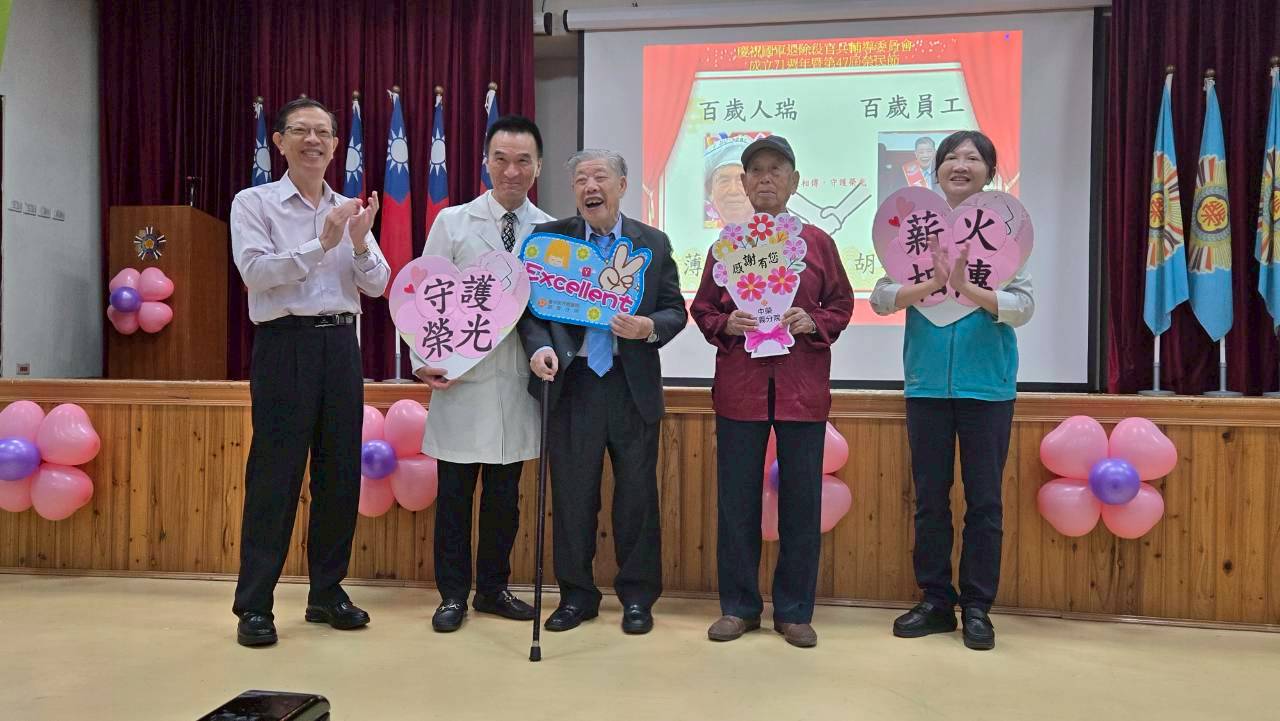 嘉義榮民服務處與臺中榮民總醫院嘉義暨灣橋分院為了彰顯榮民對國家社會之貢獻,於今(29)日聯合舉辦「輔導會成立71週年暨第47屆榮民節」慶祝大會,活動由嘉義榮服處與臺中榮民總醫院嘉義分院共同主辦,特別邀請嘉義縣(市)機關、團體、軍方、企業代表及退除役官兵(眷)、退伍軍人社團代表等200人共襄盛舉,同時邀請2位百歲人瑞薄震中伯伯及胡善民伯伯到場同歡,胡伯伯更贈送陳院長及許處長親筆出版自傳,場面溫馨感人,熱鬧非凡。