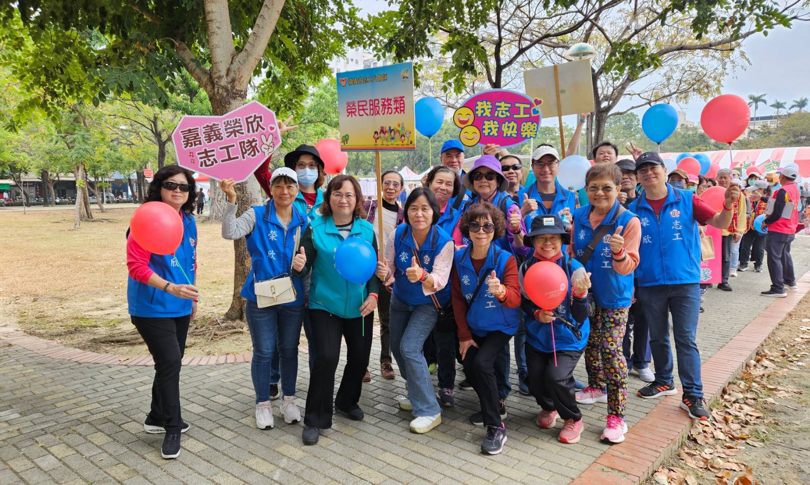 嘉義榮服處榮欣志工於日前參加嘉義市政府舉辦以「嘉義建城321 諸羅志工來+1」為主題的國際志工日活動,與來自嘉義市各目的事業主管機關及志願服務運用單位約1,600位志工齊聚一堂,共同響應2026年「國際志工永續發展年」(IVY 2026)並舉行宣示儀式。活動由在地「無酵餅樂團」以《全家一起飛》熱力開場,接續活力帶動唱、志工信心宣示及歡樂摸彩等節目,增進志願團隊間的情誼與交流,充分展現志工社群的熱忱與生命力。