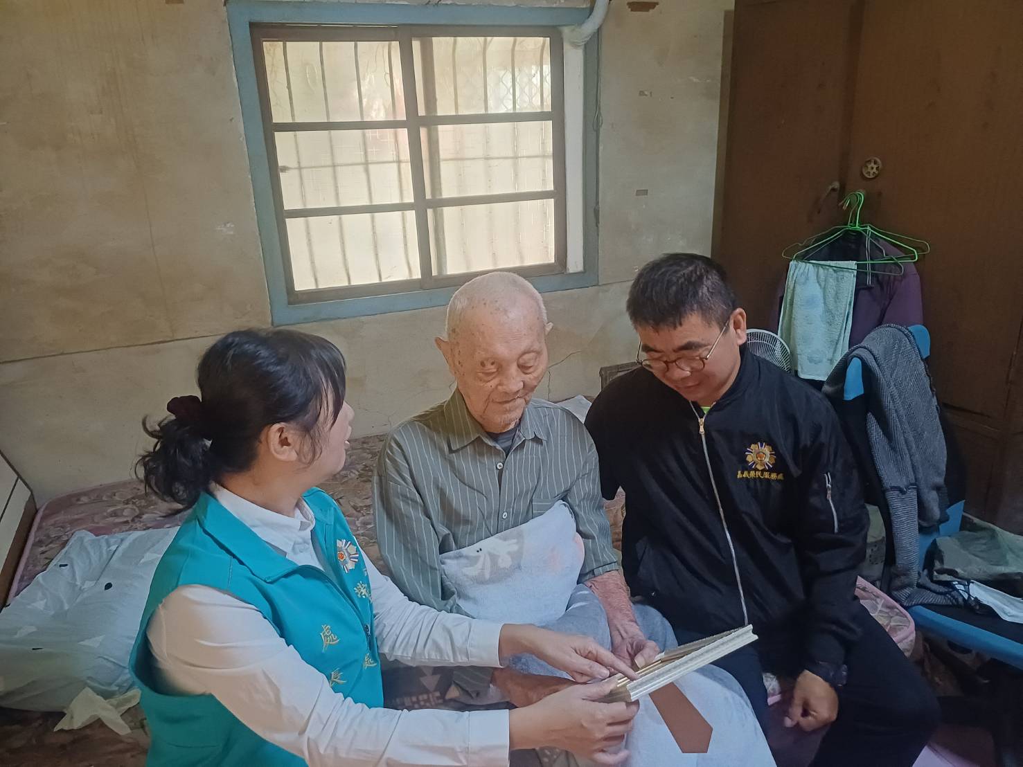 許處長訪視年長呂伯伯時,除了與長輩話家常外,也致贈肉鬆,希望長輩早上吃粥暖呼呼時,也能營養均衡心暖暖。隨後許處長在社區服務組長的陪同下,到另一位呂伯伯的家中,除了關心長輩衣著保暖外,呂伯伯也與處長分享生活照片與狀況,因冬天容易皮膚乾裂,長輩皮膚特別薄更須小心注意,因此許處長致贈乳液,希望長輩注意自己身體狀況。接著許處長來到行動不便的沈伯伯家中,關心沈伯伯受照顧狀況,並致贈毛巾被讓長輩能注意保暖。許處長也特別叮嚀這些長輩們早暖溫差大,千萬別因白天看到太陽溫暖,就忽略了夜晚保暖,更叮囑用電(火)安全與住宅通風,這些貼心叮嚀都讓榮民長輩倍感窩心與揪甘心。