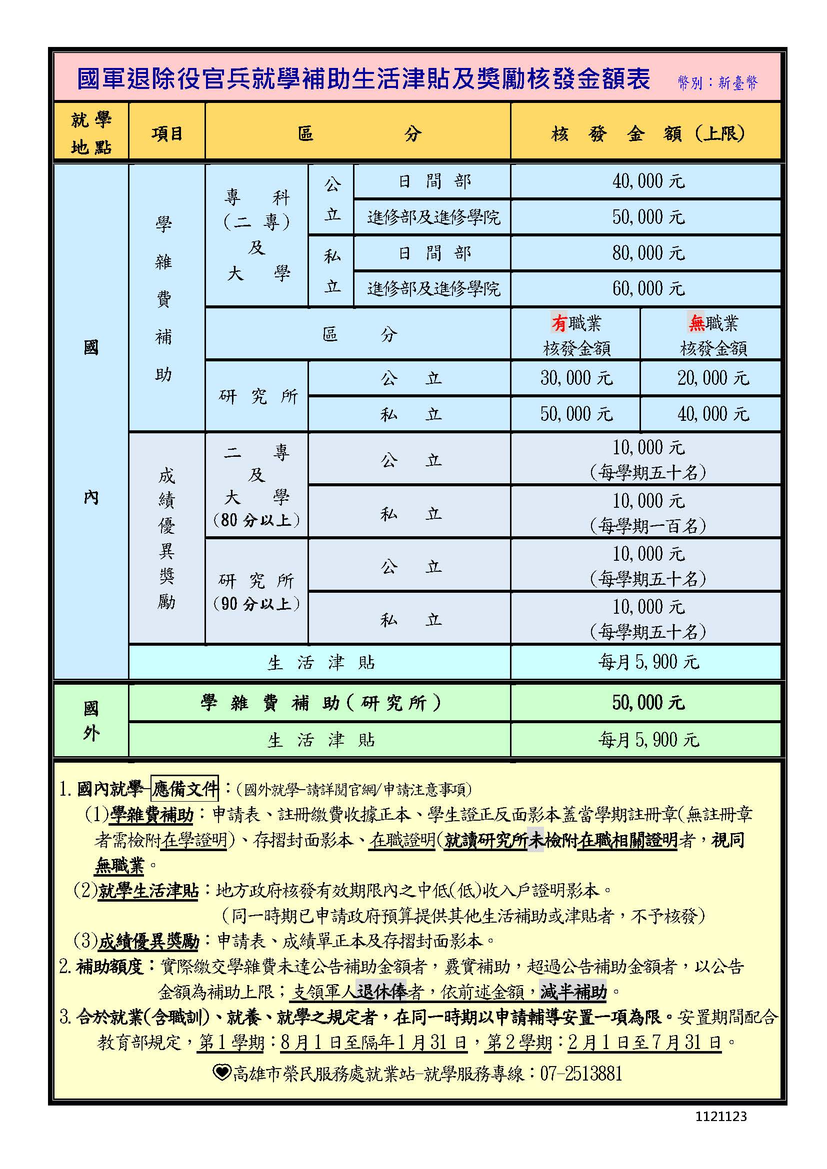 【國軍退除役官兵就學補助生活津貼及獎勵,開始受理申請!】