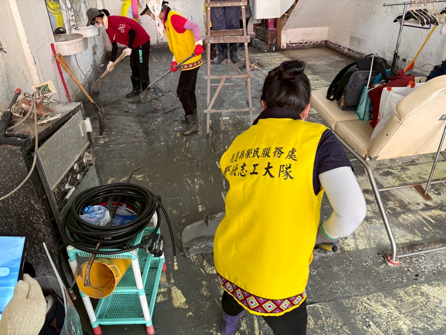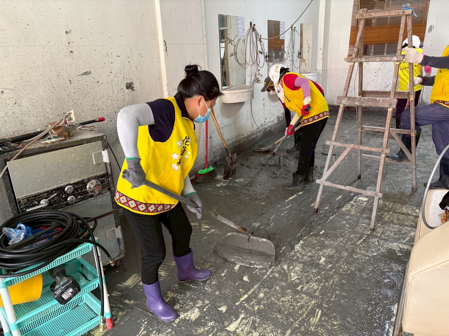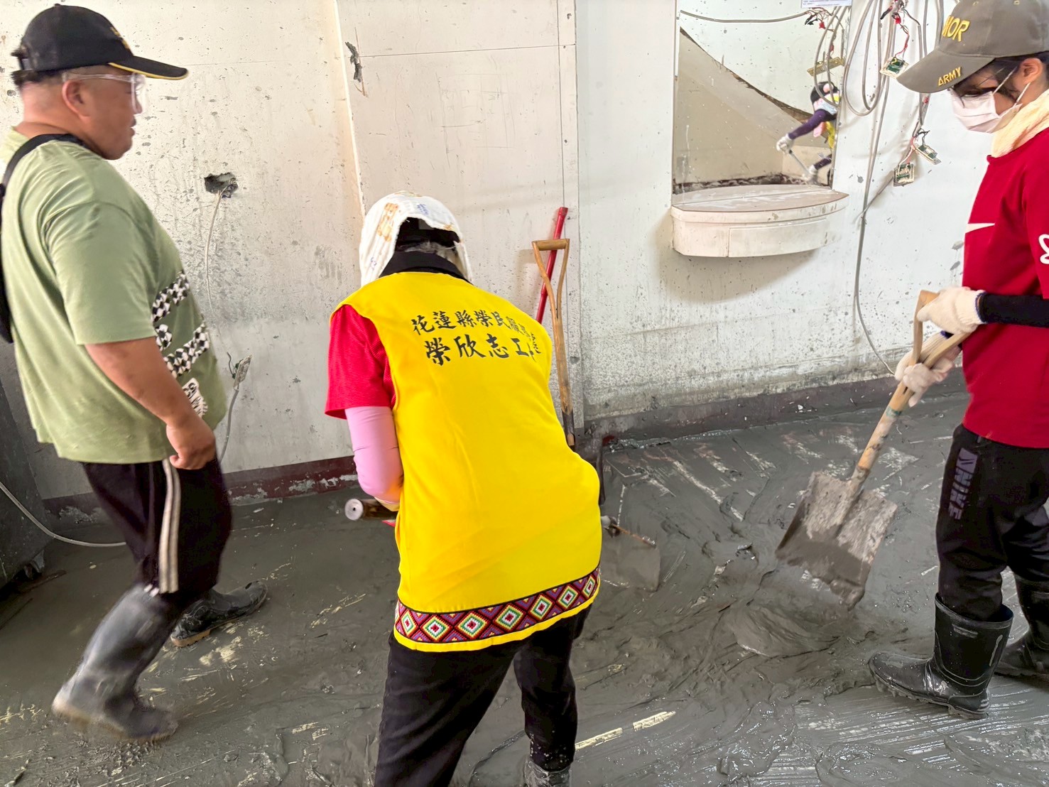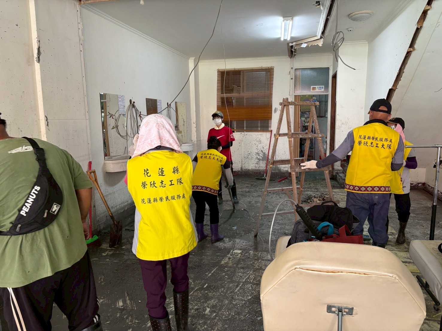 花蓮縣馬太鞍溪堰塞湖溢流釀災重創光復鄉,災後復建之路漫長。光復火車站持續有志工湧入,花蓮縣榮民服務處榮欣志工隊及受認養榮民自強學子們自發性前往災區,穿著雨鞋、戴上手套,拿起鏟子、圓鍬,協助清掃家園,在連假期間共同協助,承擔了民宅清淤區域及細部清潔工作有人負責清除街道泥沙、協助搬運泡水家具,幫忙運送物資補給、物資打包、義煮服務等。