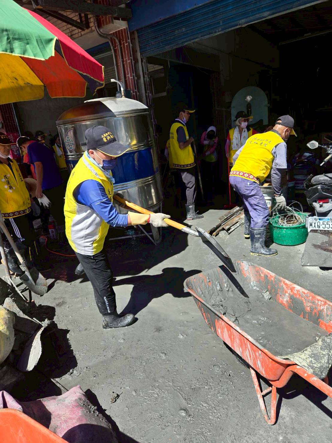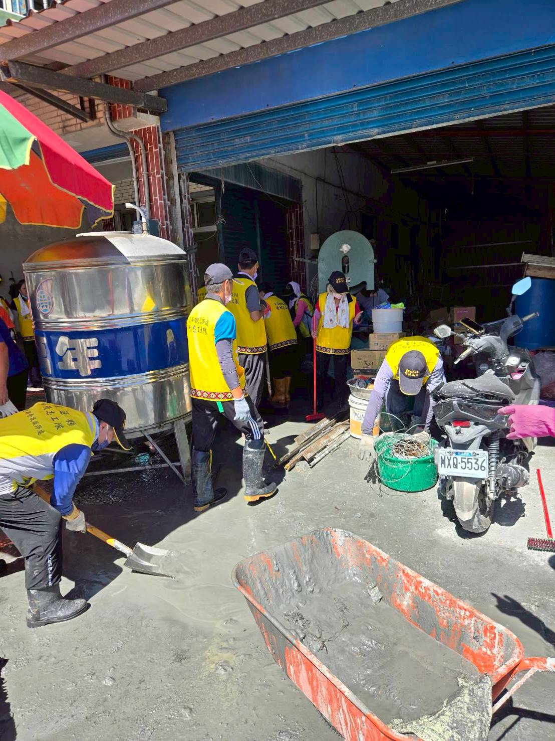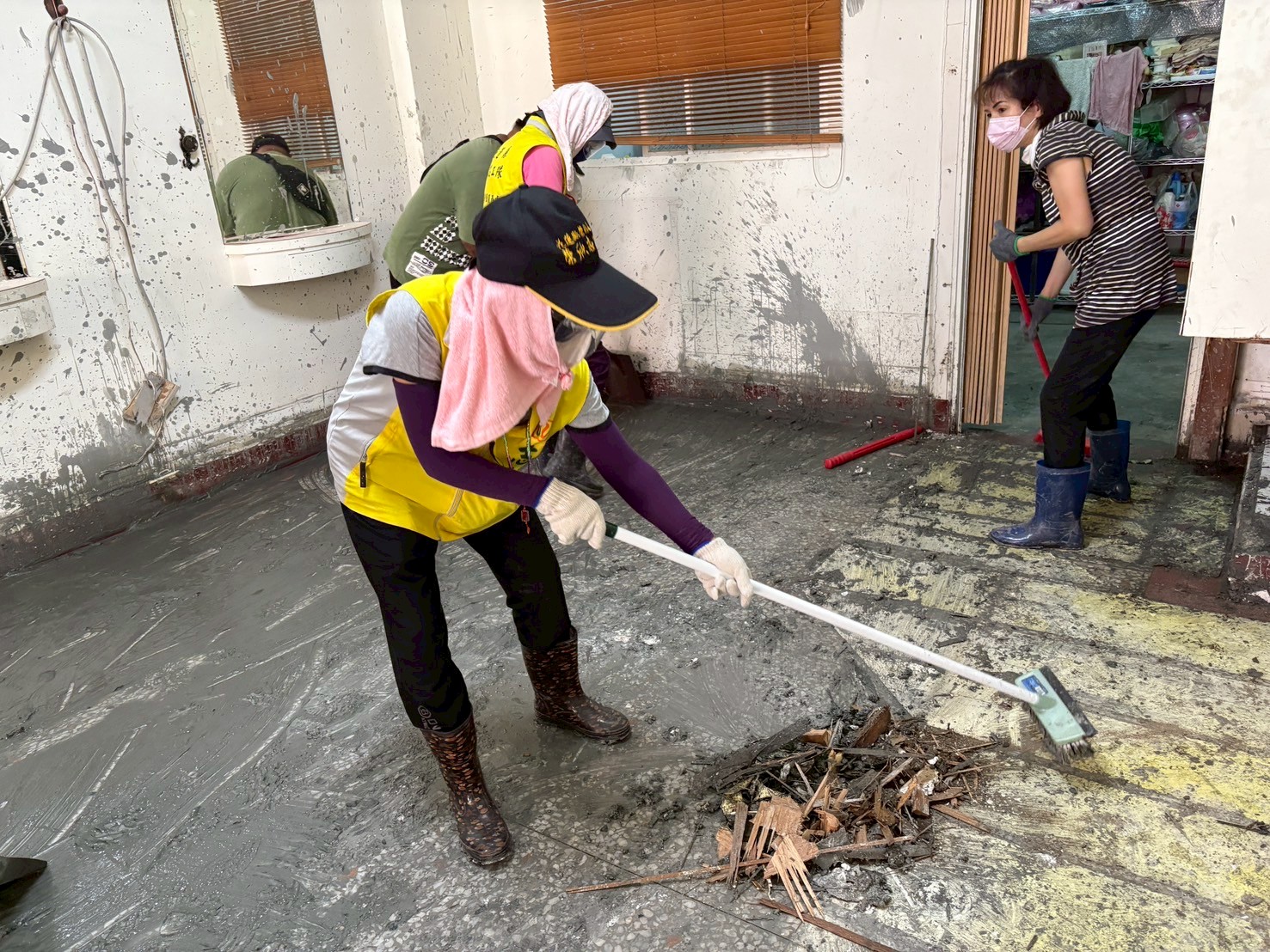 嚴德發主任委員亦勉勵協助已返家受災退除役官兵眷住宅清理之職員工及榮欣志工,為社會注入愛心,帶動善的能量,出發點都來自「愛」。感恩所有團體一起付出,期望這個愛的力量,能讓災區盡速復原。