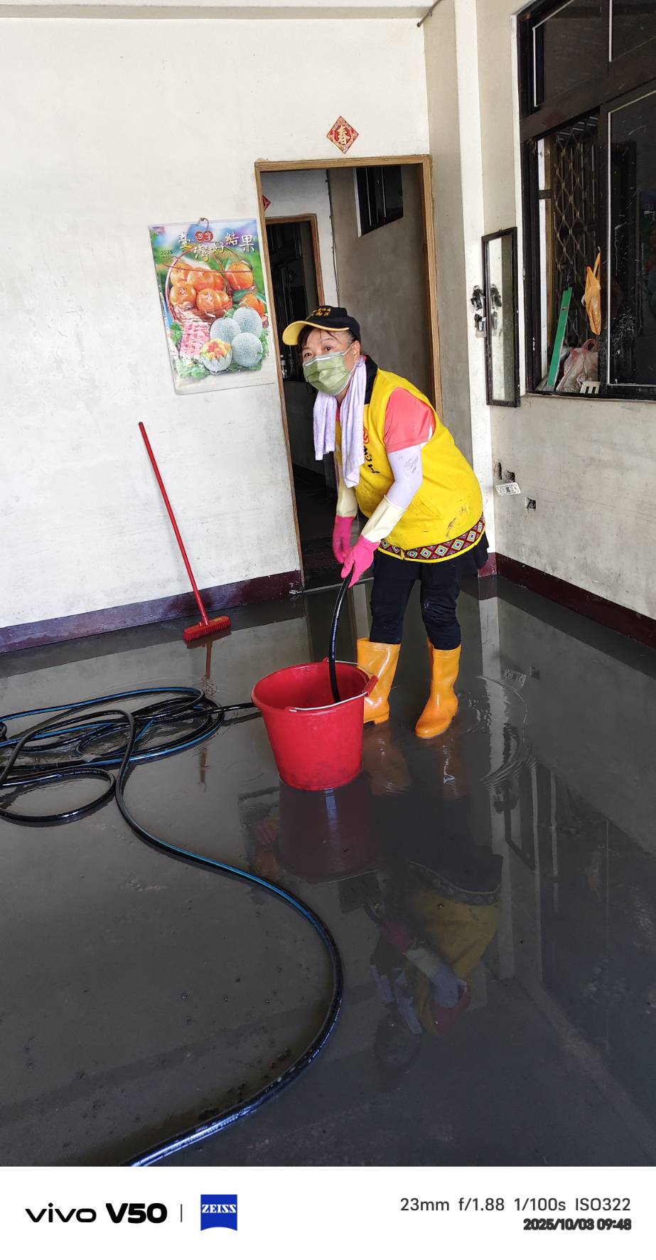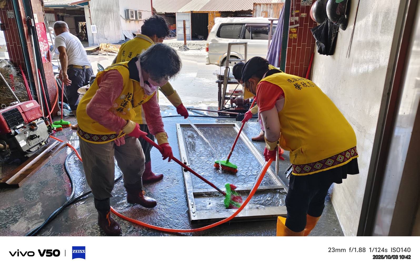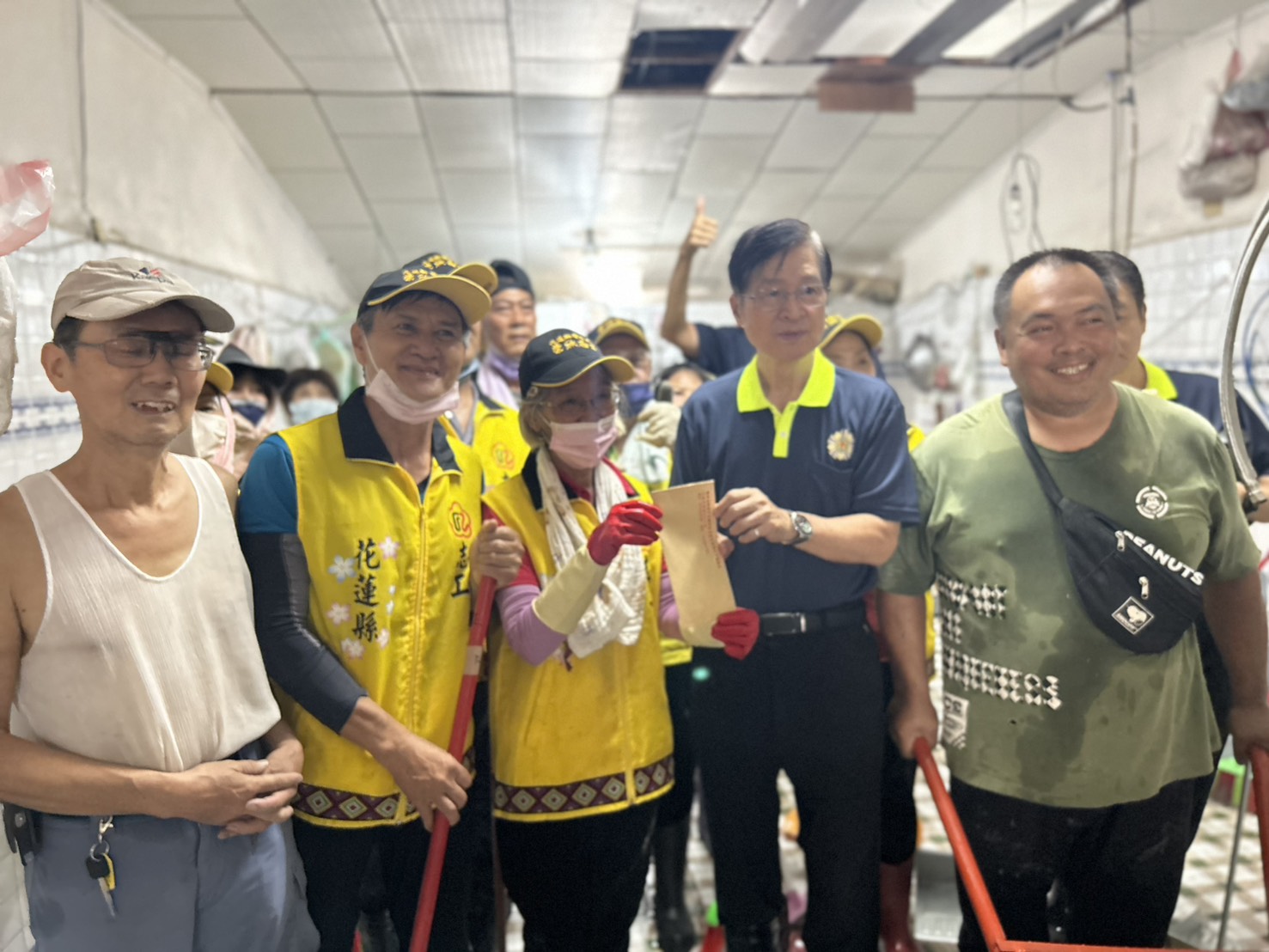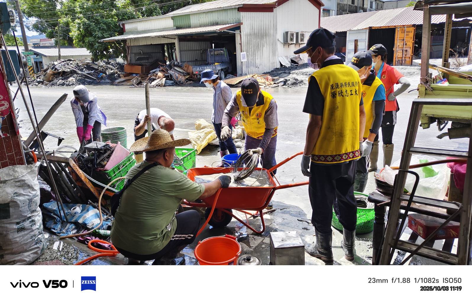 嚴德發主任委員亦勉勵協助已返家受災退除役官兵眷住宅清理之職員工及榮欣志工,為社會注入愛心,帶動善的能量,出發點都來自「愛」。感恩所有團體一起付出,期望這個愛的力量,能讓災區盡速復原。