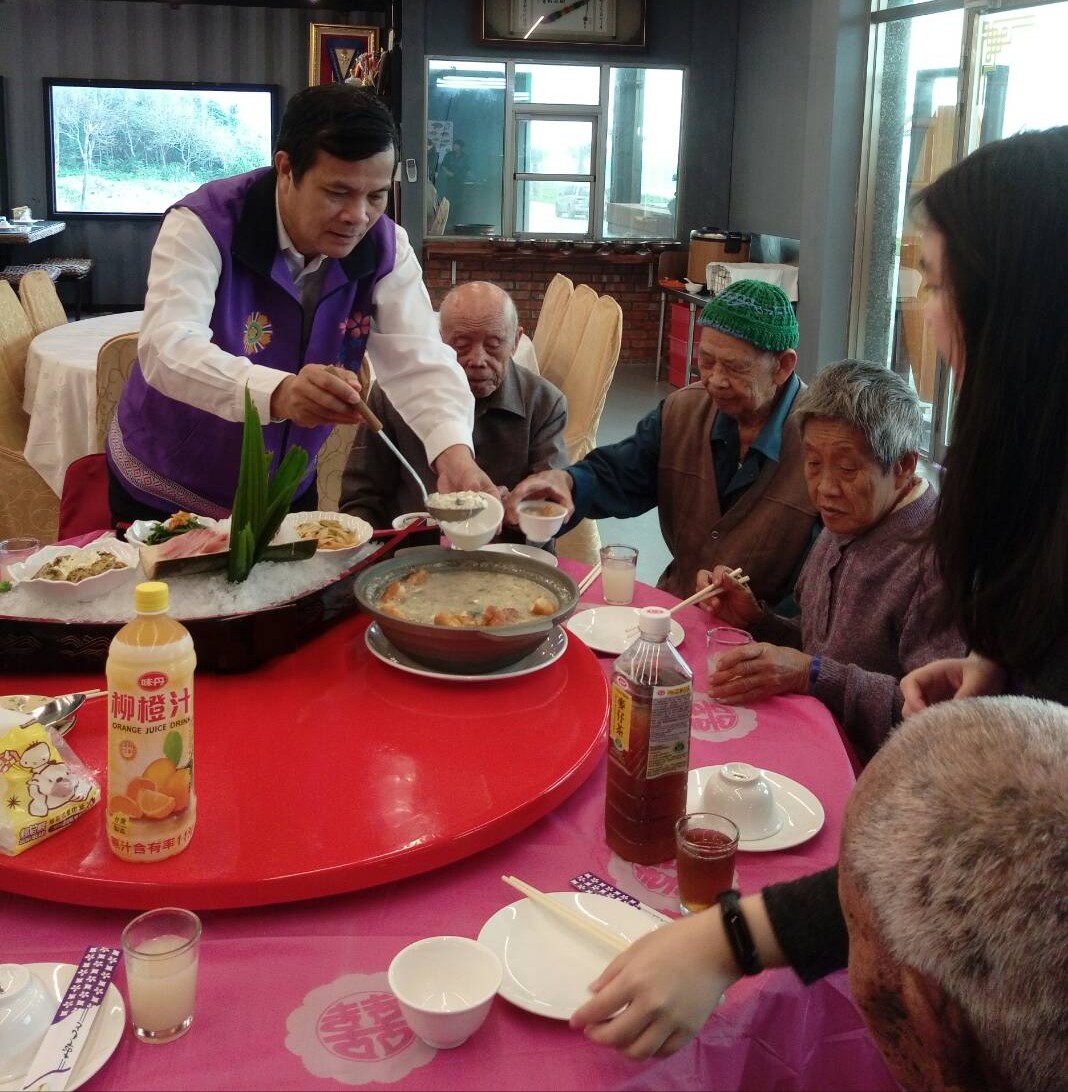 花蓮縣榮民服務處因應春節到來,自1月17日起至31日止,結合有壯工程有限公司、花蓮遠雄悅來大飯店及榮欣志工,於豐濱鄉、吉安鄉、壽豐鄉、鳳林鎮及玉里鎮,舉辦一系列圍爐團聚及居家環境清潔活動,藉此關懷單身獨居之年長榮民眷,傳遞社會的愛與溫情,陪伴長者們感受年節歡樂氣氛。 本次活動除獲得總公司位於臺北市,從事建築設計的有壯工程有限公司贊助加菜金5萬元外,亦與在地企業花蓮遠雄悅來大飯店攜手合作,因應榮民眷可近性及實務性需求,除舉辦4場次飯店、餐廳之餐敘圍爐外,亦辦理2場次於榮民伯伯家中除舊布新、辦桌圍爐之多元化圍爐活動,並邀集榮欣志工及替代役男,加入榮民眷住宅清潔服務與團圓過節之行列。 首場圍爐在本(17)日於豐濱鄉展開,由花蓮縣榮民服務處張揚興副處長,帶領榮欣志工、社區服務組及專責輔導員,上午前往91歲獨居榮民陸伯伯家中進行除舊布新,中午邀請伯伯一同前往餐廳與鄉內其他單身獨居之年長榮民眷圍爐話家常。 張揚興副處長於席間代表退輔會及榮服處一一贈送春聯予榮民眷,預祝長者們『新年快樂』、『豬事順心』,並特別感謝有壯工程有限公司、遠雄悅來大飯店贊助本處暖心圍爐活動,表示榮服處將於春節前夕,持續連結公私部門資源,加強單身、獨居、年長等弱勢榮民眷之服務照顧。