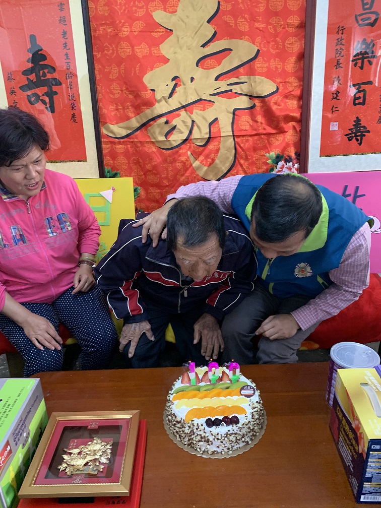 鮮花盛開的三月,代表新的一年生生不息,欣逢榮民王雲超爺爺百歲壽誕,臺東縣榮民服務處今日由處長張揚興偕同服務同仁前往爺爺家中為其祝壽,祝賀福如東海、壽比南山,現場溫馨熱鬧洋溢快樂氛圍,王爺爺及家屬對輔導會貼心照顧榮民的熱誠頻頻表示感謝。