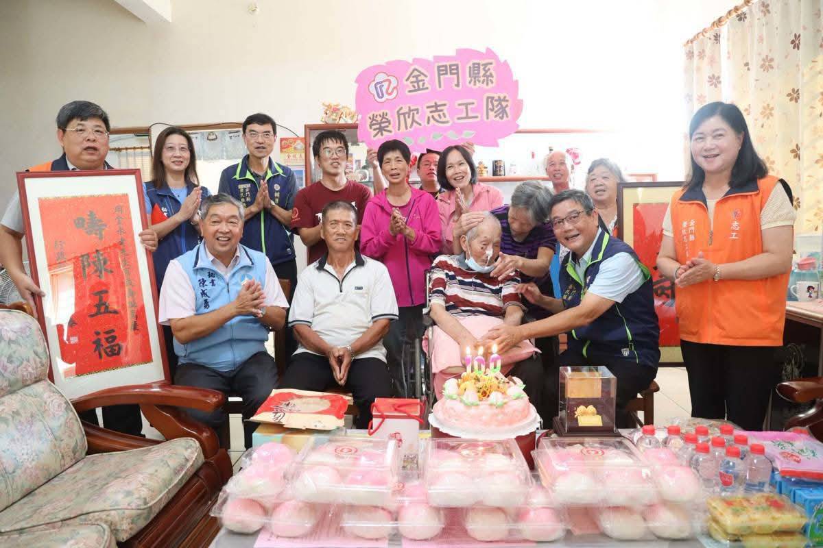 金門榮服處偕地方政府同慶自衛隊榮民周金水伯伯期頤嵩壽