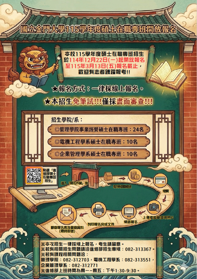 國立金門大學函送115學年度碩士在職專班招生資訊