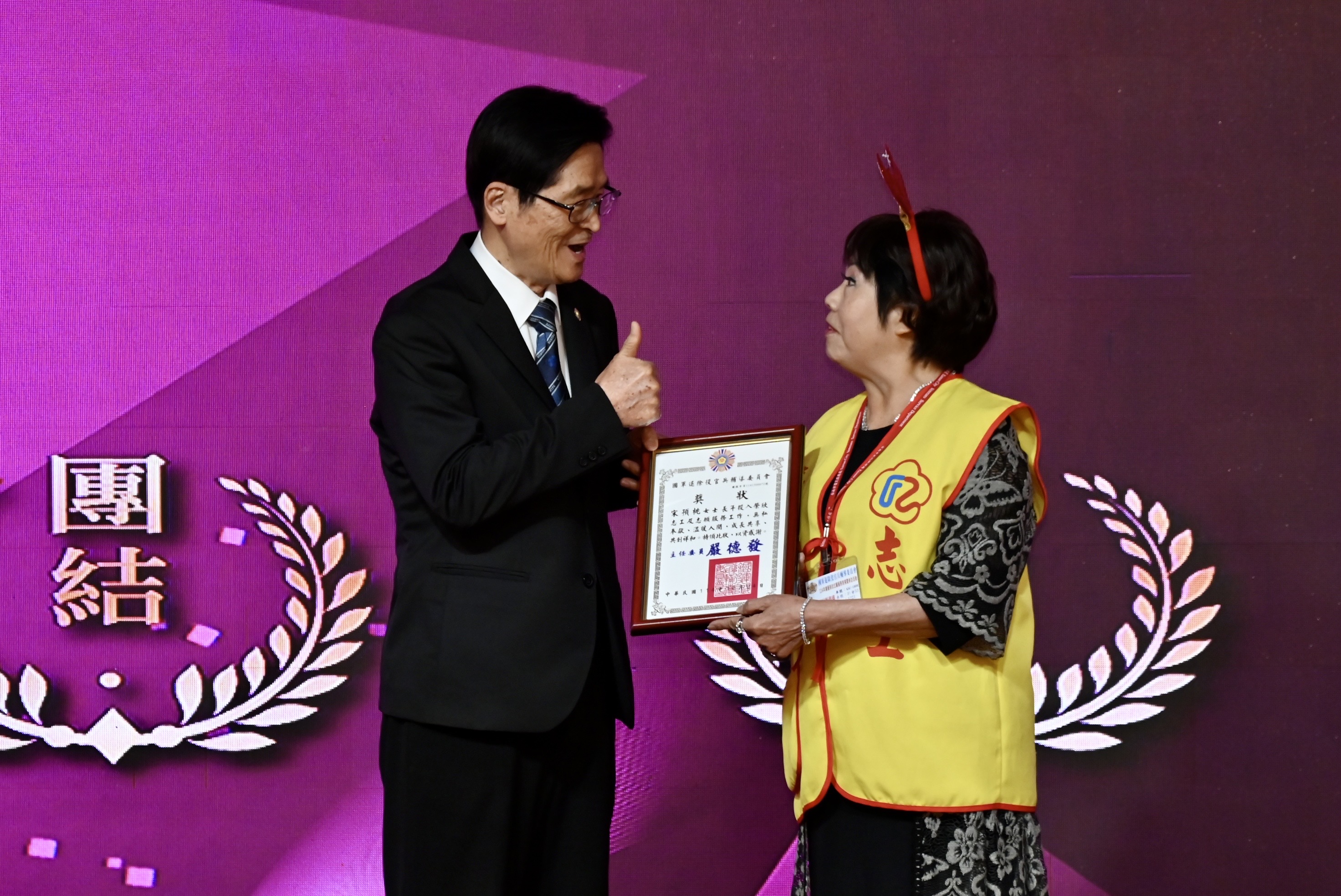 國軍退除役官兵輔導委員會為慶祝12月5日國際志工日,特於今(4)日在臺北市鉅星匯國際宴會廳舉辦「114年績優榮欣志願服務表揚典禮」,由主任委員嚴德發主持。