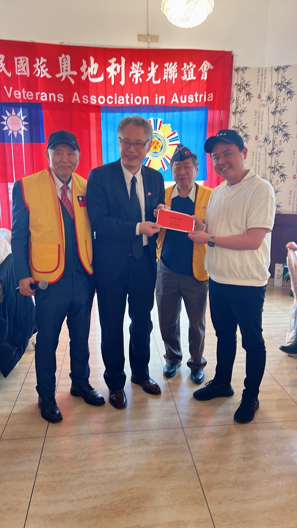 112年11月12日奧地利榮光會在維也納辦理餐會慶祝榮民節。活動聚集了多位旅奧多年的榮民眷參加,當日大家共同回顧過往經歷並敘舊。駐奧地利代表處大使張小月女士亦受邀出席榮民節餐會,並於會中向在居住在奧地利我國榮民致敬,並感念他們對國家的貢獻與服務。