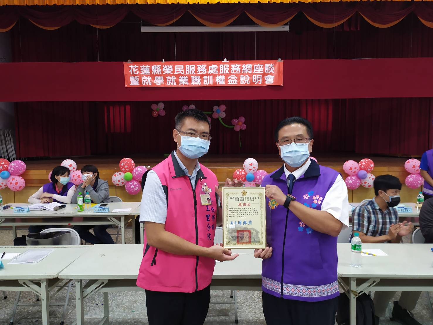 榮總玉里分院劉韋良主任代表院長接受長期認養榮民遺孤之感謝狀