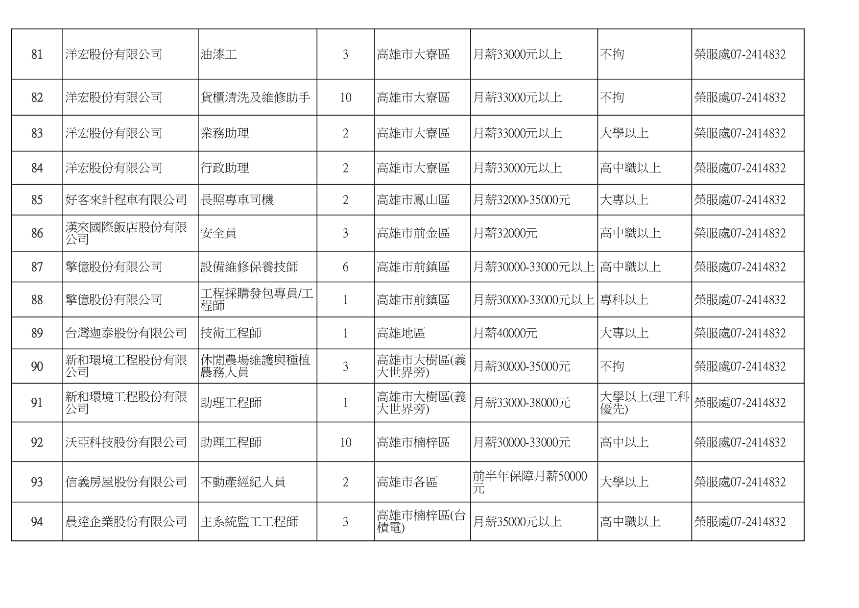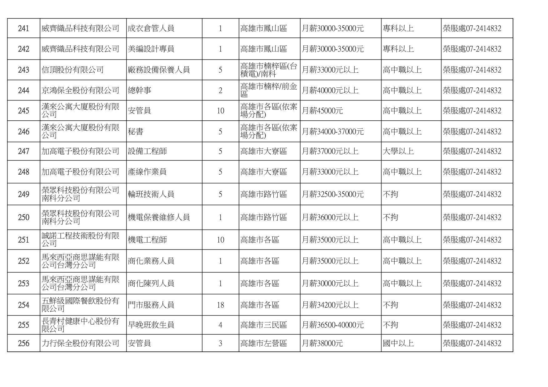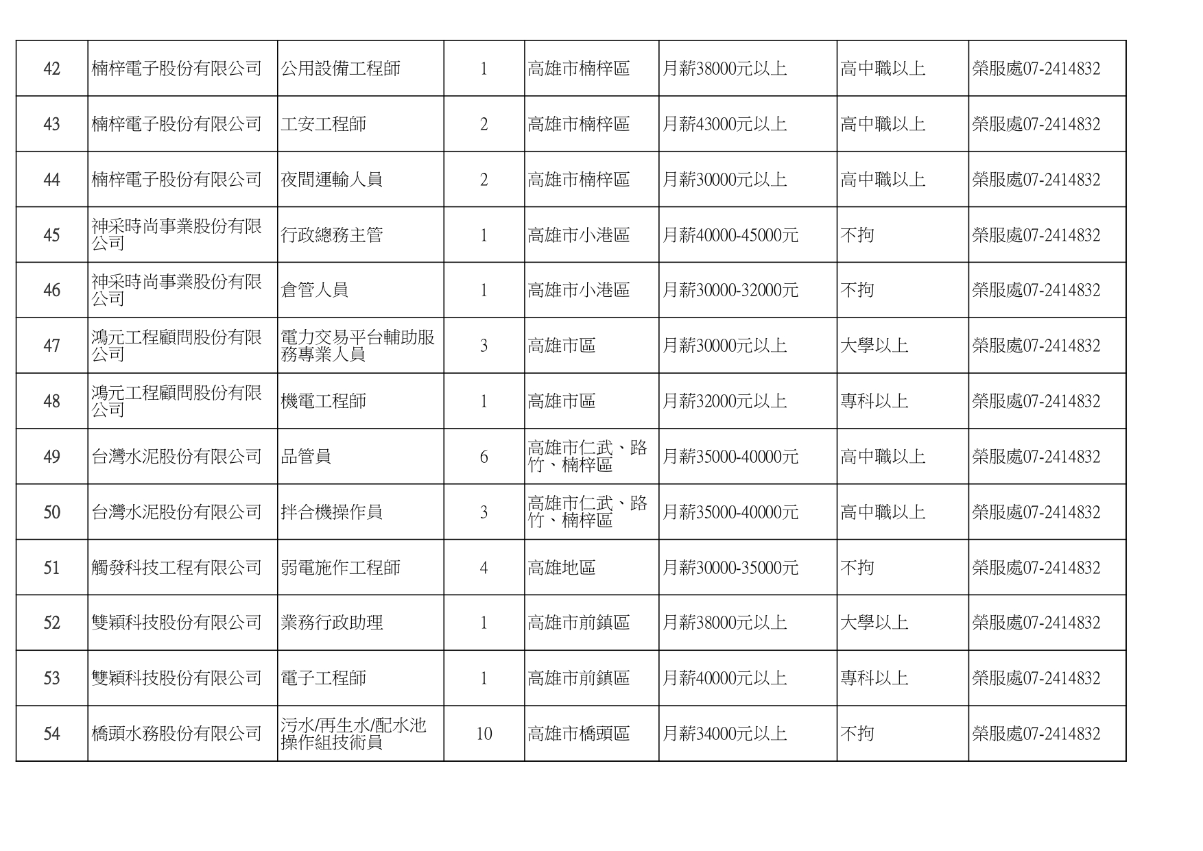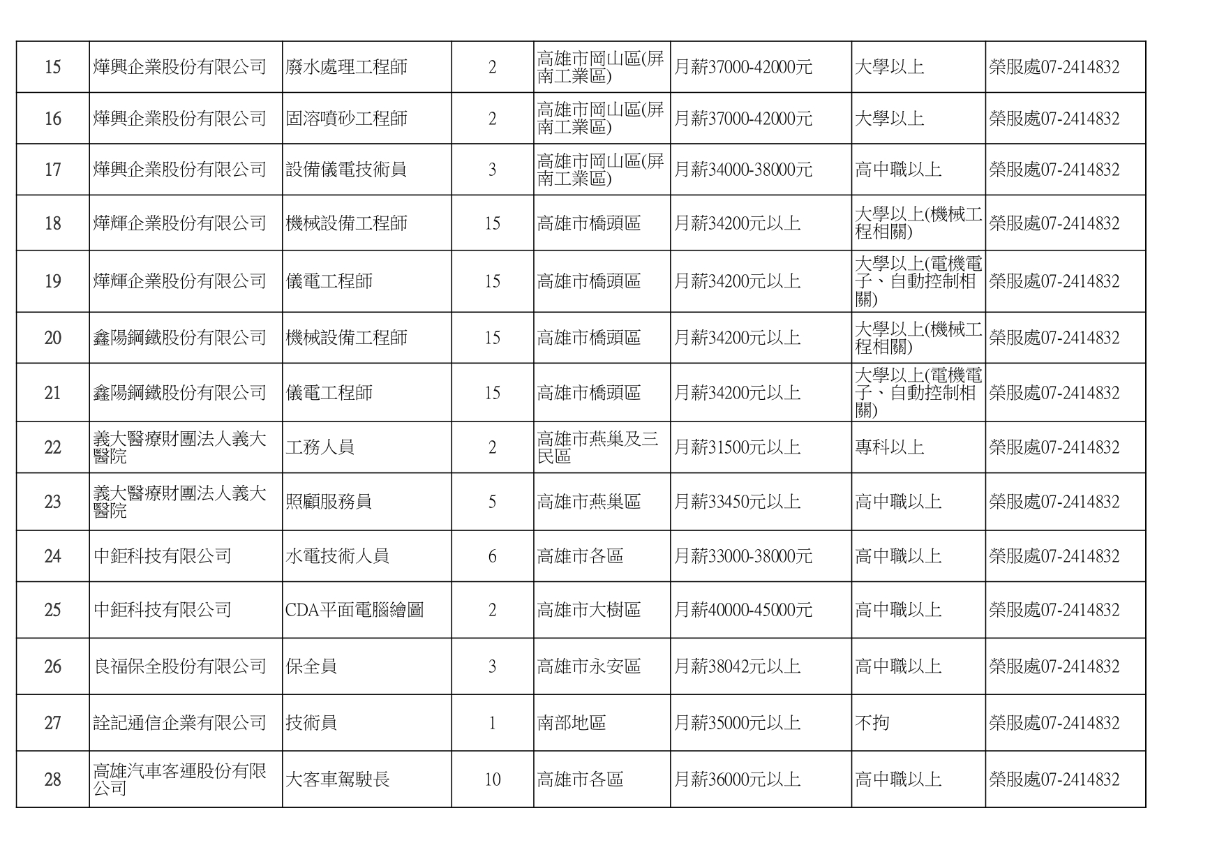 高雄榮服處-廠商職缺列表114.10.1.pdf | 114-10-01 | 28 |
