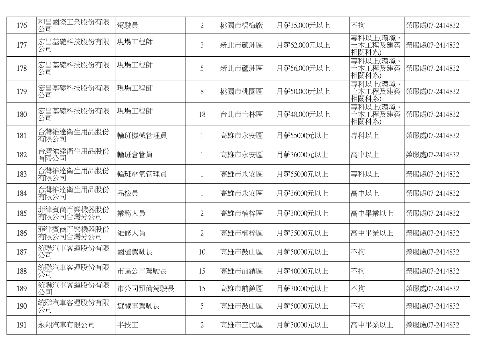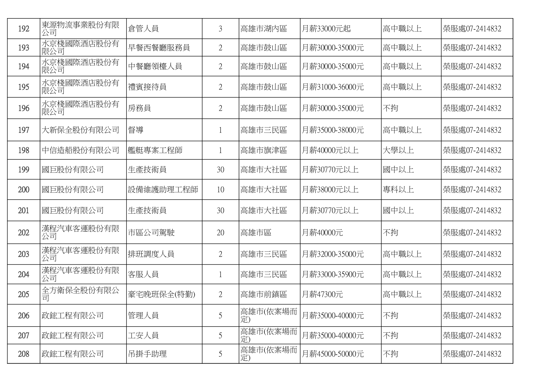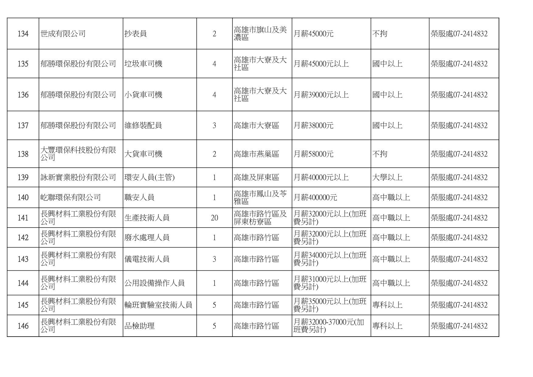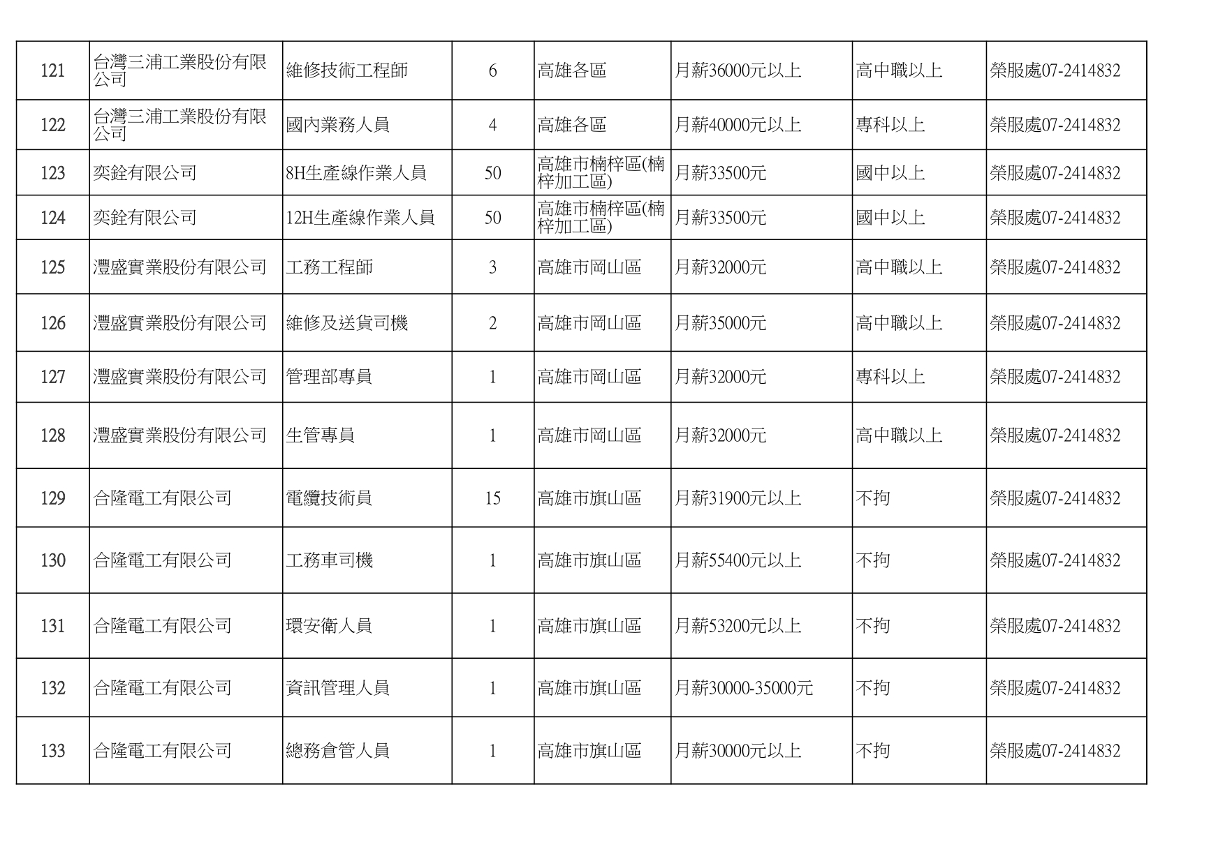高雄榮服處-廠商職缺列表114.10.1.pdf | 114-10-01 | 28 |