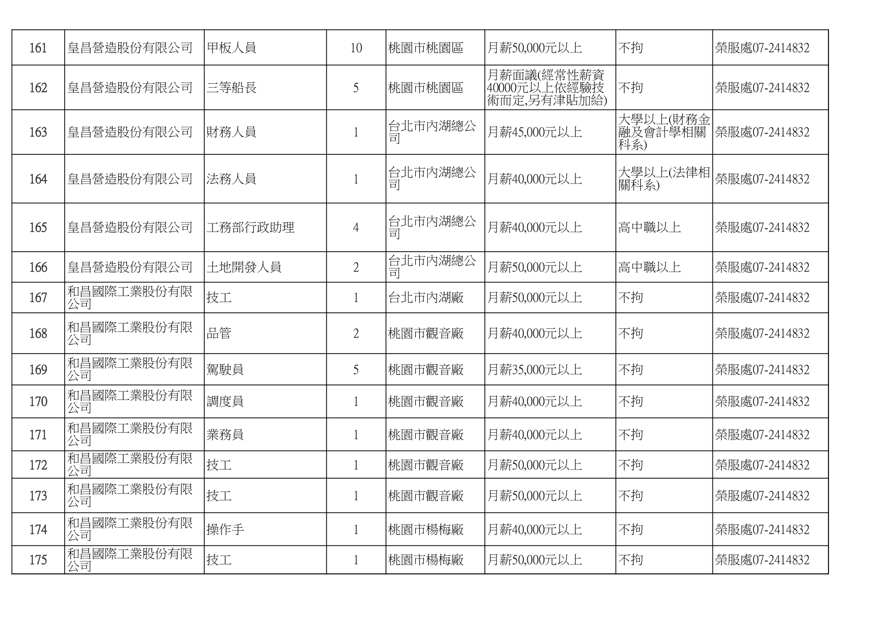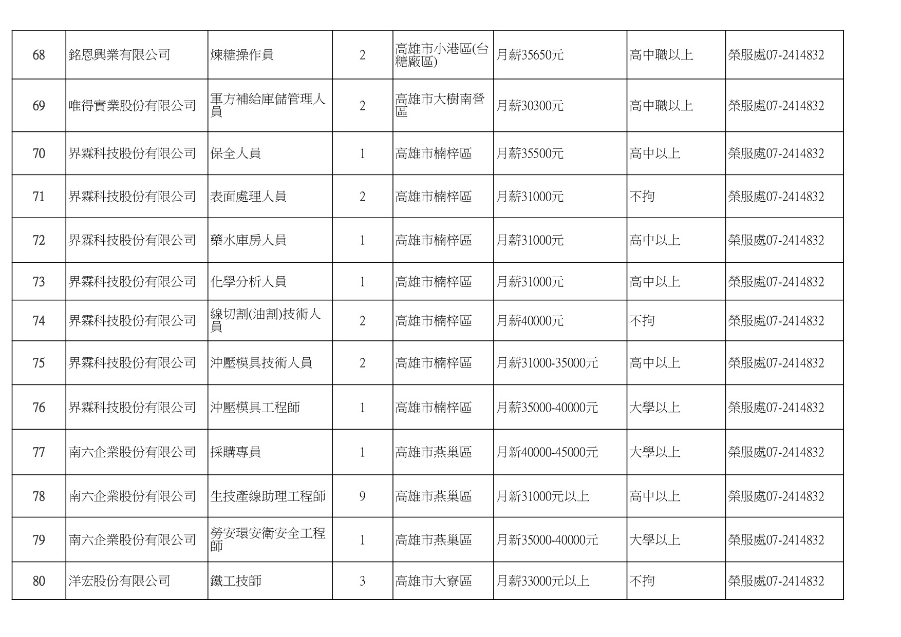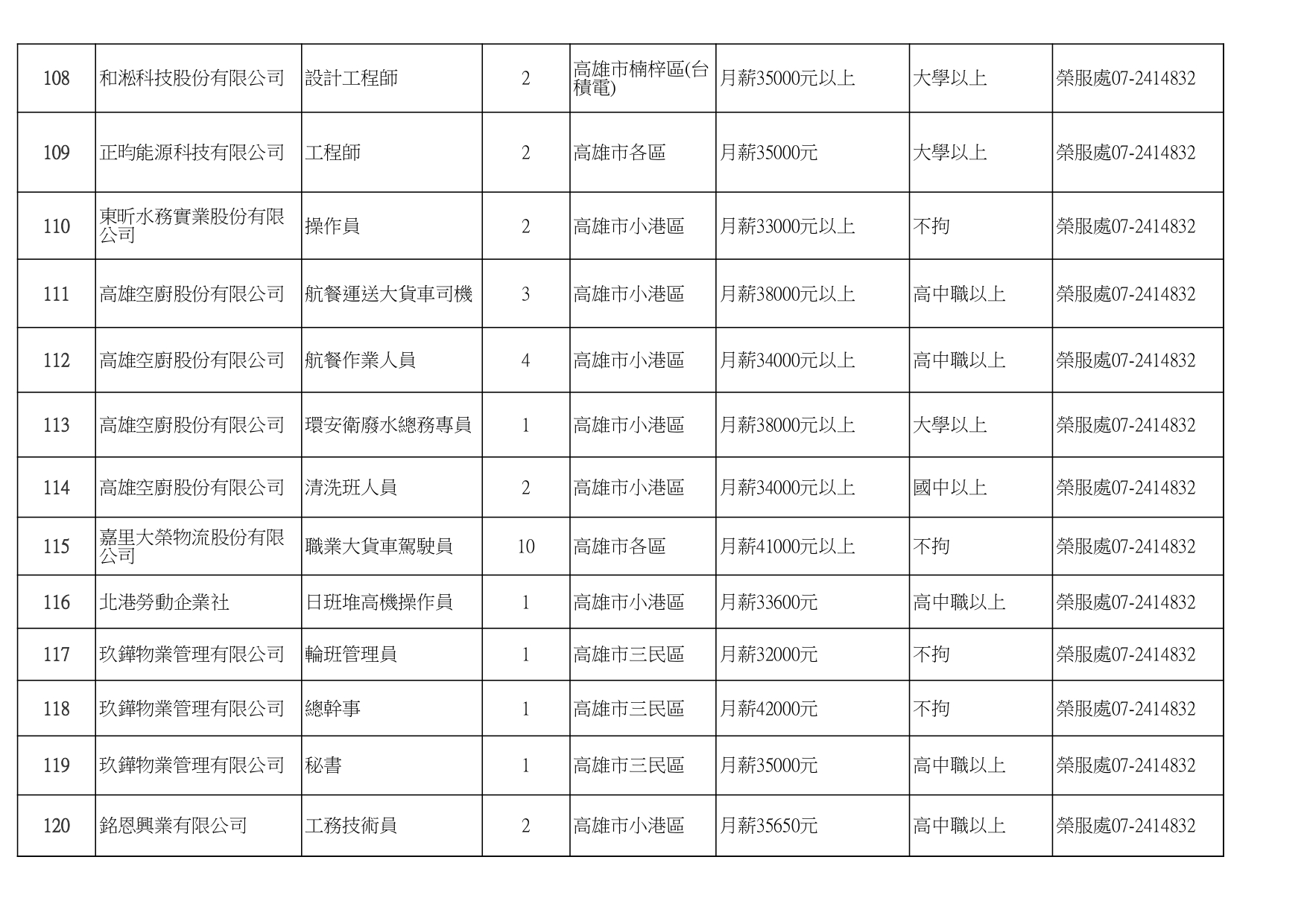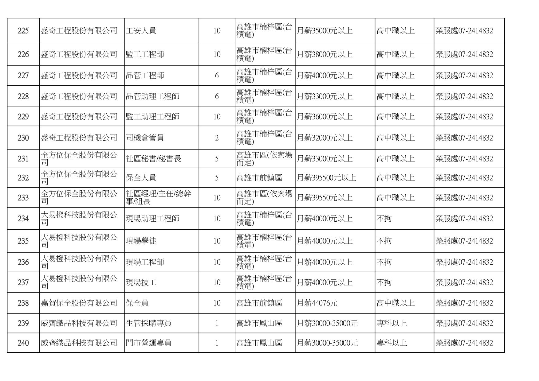 高雄榮服處-廠商職缺列表114.10.1.pdf | 114-10-01 | 28 |