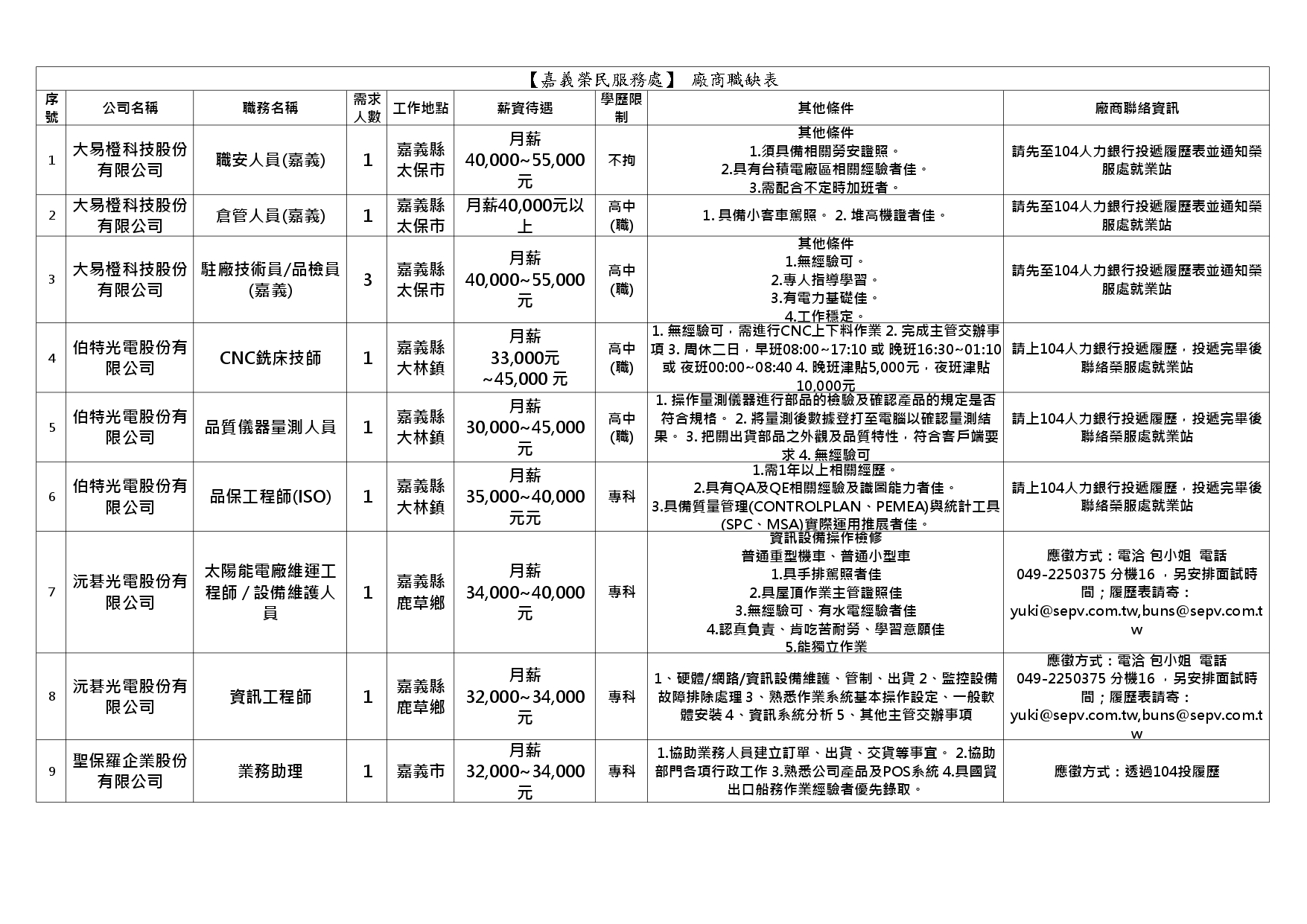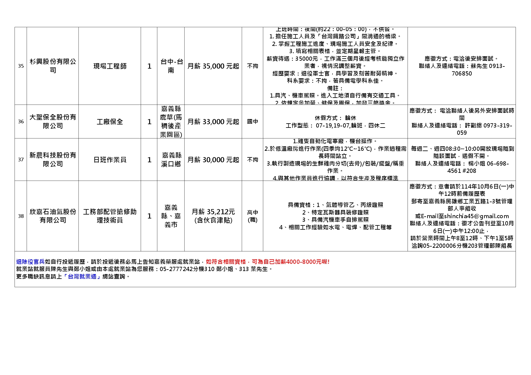 【嘉義榮服處】廠商職缺表(114.10.02).pdf | 114-10-03 | 10 |