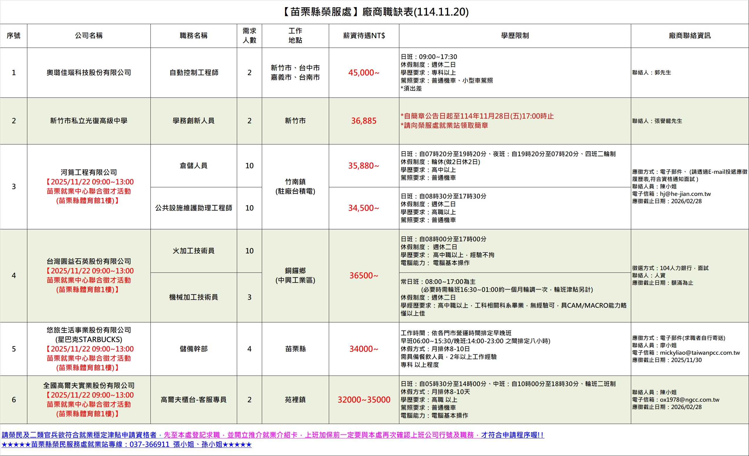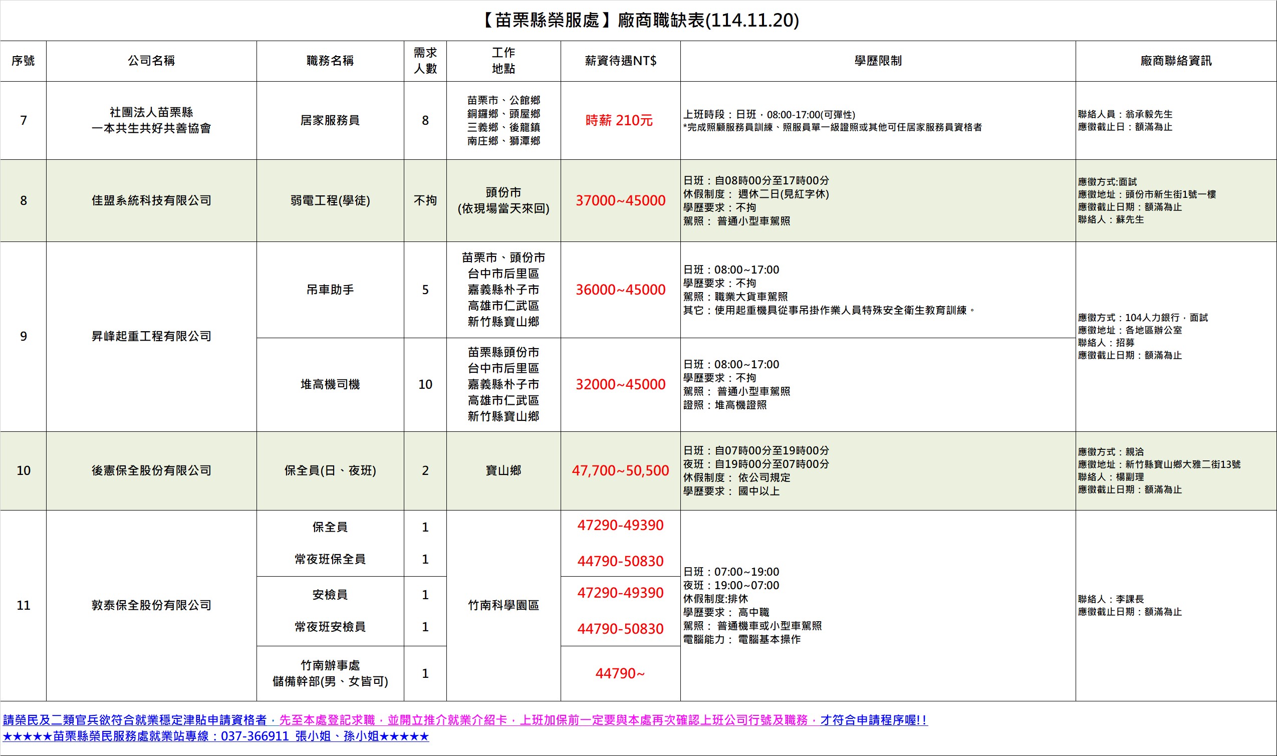 | 苗栗縣榮服處 廠商職缺表 1141120.pdf | 114-11-20 | 0 |
