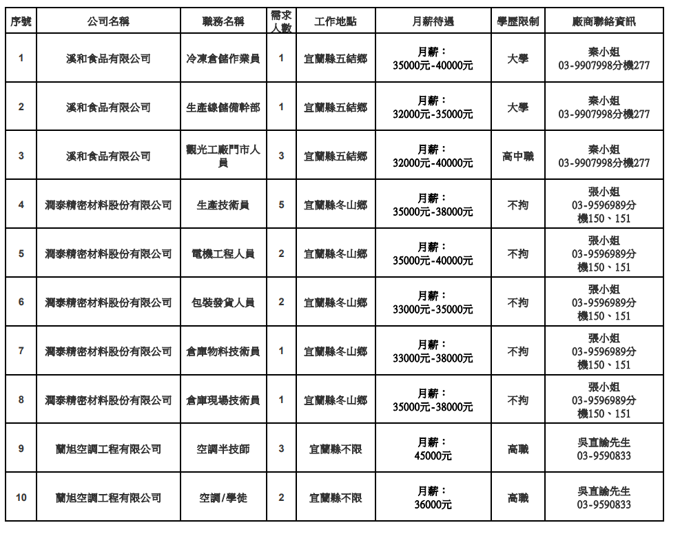 發布日期:115-03-31 資料來源:宜蘭縣榮民服務處 【宜蘭縣榮服處】廠商職缺表(115.04.06) 附件下載 檔案名稱 更新日期 下載次數 【宜蘭縣榮服處】廠商職缺表(115.04.06).pdf 115-03-31 4