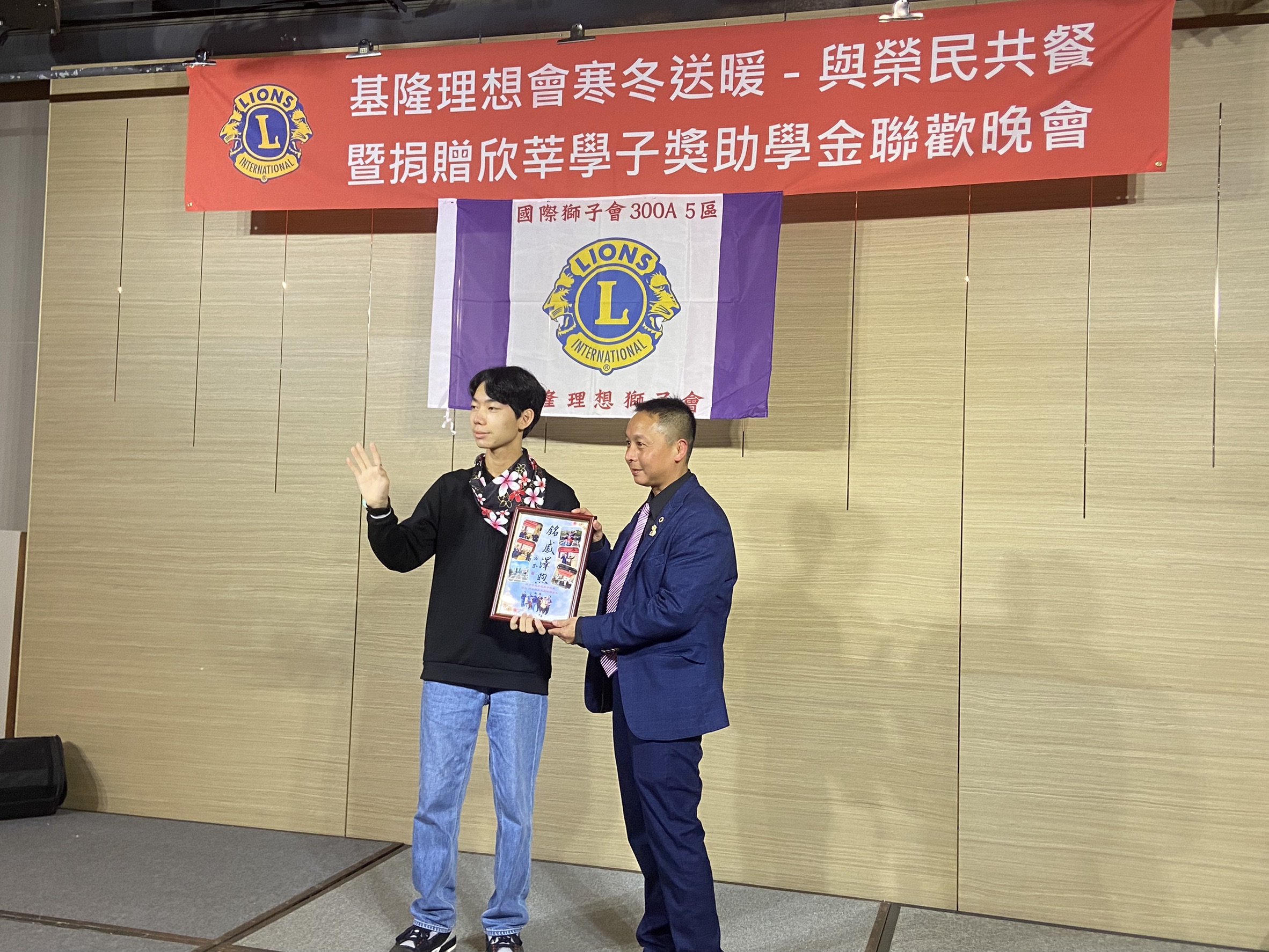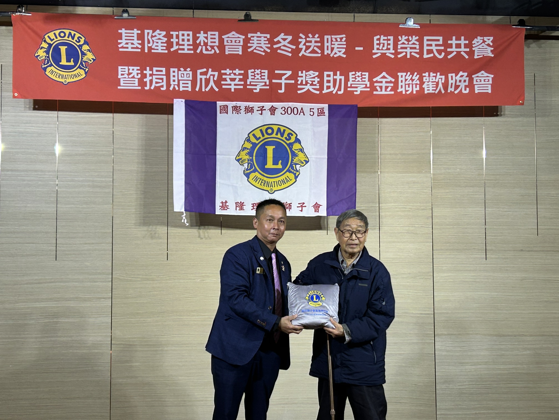 基隆理想獅子會長期關懷基隆市榮民服務處轄區內亟需照顧的榮民眷及欣莘學子,連續11年舉辦「基隆理想會寒冬送暖-與榮民共餐暨贈欣莘學子獎助學金聯歡晚會」,活動於20日假基隆港海產樓舉行;基隆榮服處方正處長攜榮民眷及欣莘學子們約50人出席,並致頒了理想獅子會及國際獅子會300A5區總監李敏卿、第三副總監陳泓志、事務長林烽裕,MD300A複合區第一副議長紀乃正以及轄下各分區感謝狀,表達基隆市榮服處對基隆地區獅子會獅友們,長期對榮民眷及欣莘學子的關懷協助、襄贊各項愛心物資、獎助學金的誠摯感謝。活動現場嘉賓雲集,熱情洋溢現場氣氛歡快,與會的榮民眷長輩及孩子們充分感受到獅子會的熱情關懷。 聯歡活動中,理想獅子會會長林朝樑代表贈送抱枕與棉被兩用毯,由高齡93歲的反共義士榮民劉純儉代表受贈、勝威食品有限公司李尚霖代表贈發欣莘學子每人1,000元獎助學金,由邱同學代表受贈、獅子會簡淑娟女士也捐贈電熱毯給榮服處提供榮民眷使用;會中獅子會貼心地為11、12月份受邀與會的榮民壽星及學子張小妹妹溫馨慶生。欣莘學子及家屬們,共同表演「紅蜻蜓」舞蹈,並推派代表為大家贈送由處長題字「銘感澤煦」作品,感謝獅子會一路以來的照顧與陪伴,他說:「在未來也希望能像獅子會一樣成為貢獻社會的人」;其後,獅友們也熱情地與榮民眷快樂歡唱,氣氛熱絡。 理想獅子會會長林朝樑表示,今年特別為基隆地區亟需照顧的榮民眷準備了抱枕與棉被兩用毯一批,委請榮服處協助分送,希望受贈者都能感受到來自獅友們的溫暖關懷,並頒發欣莘學子獎助學金,希望孩子們能平安健康的長大,並將這份溫暖留存於心,在未來也能持續將愛傳遞下去,一同回饋社會。林會長說,獅子會以服務及回饋社會為宗旨,理想獅子會對榮民眷的關懷,是多年堅持的傳統,未來還會繼續辦理寒冬送暖活動,不斷為社會、榮民眷及欣莘學子送出溫暖。 基隆榮服處方正處長致詞時表示,誠摯感謝理想獅子會的大愛精神,以及獅子會專區及各分區的愛心匯聚,年年安排如此深具意義的活動,基隆市榮服處珍惜並感恩理想獅子會這十一年來始終如一的無私奉獻與陪伴,帶給榮民眷及欣莘學子們溫馨關懷。 相關照片