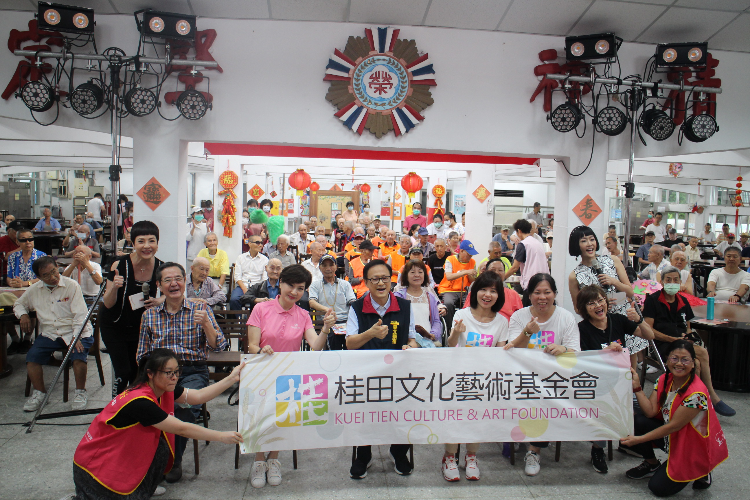 台灣優質生命協會理事長方芳芳小姐及秘書長紀寶如小姐今日(7/27)率領王瑞瑜、巴戈、沖林、向娃、紀麗如、張瓊姿、唐玲、鄭仲茵及劉福助等知名藝人至台北榮家公益演出,特別是今年已經86歲的林沖林大哥年齡跟榮家伯伯們的平均年齡還大1歲,他有這般精神跟體力是值得我們大家學習的對象,讓台北榮家今日可以說是星光閃閃、蓬蓽生輝,並用她們的歌聲來溫暖人間,目的就是為了讓愛傳承到台灣每一個需要她們的角落。 現場除了榮民伯伯以外也有很多附近居民慕名而來榮家參加這場盛會,今天的表演精彩絕倫,不時傳來熱情掌聲,也讓榮民伯伯們個個笑得合不攏嘴。