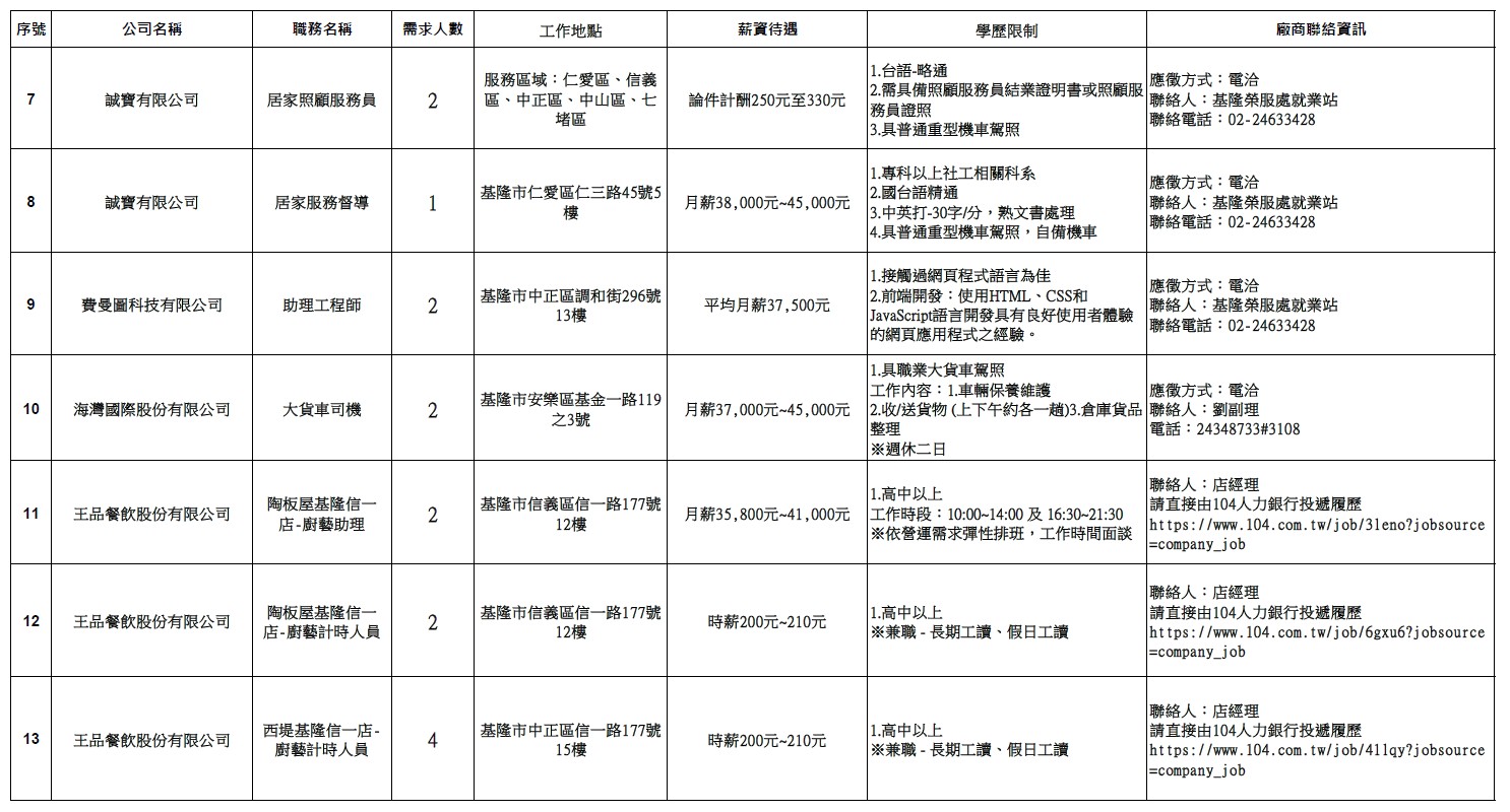 【基隆市榮服處】廠商職缺表(114.10.07)-7