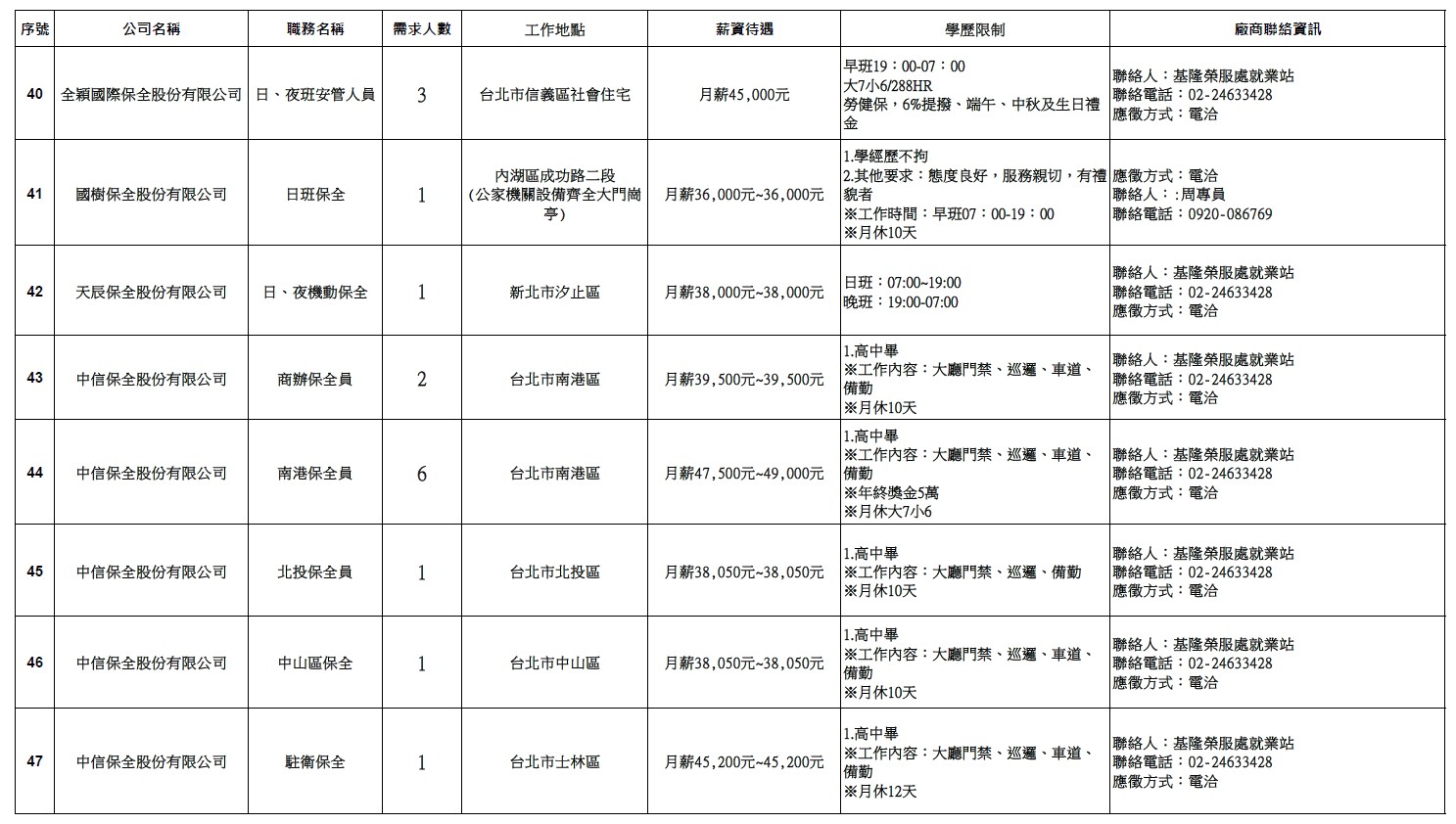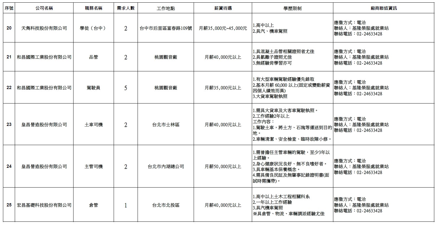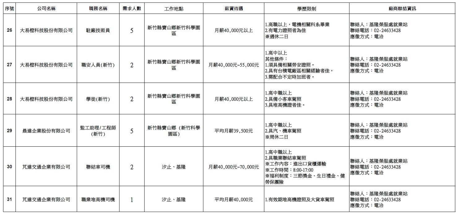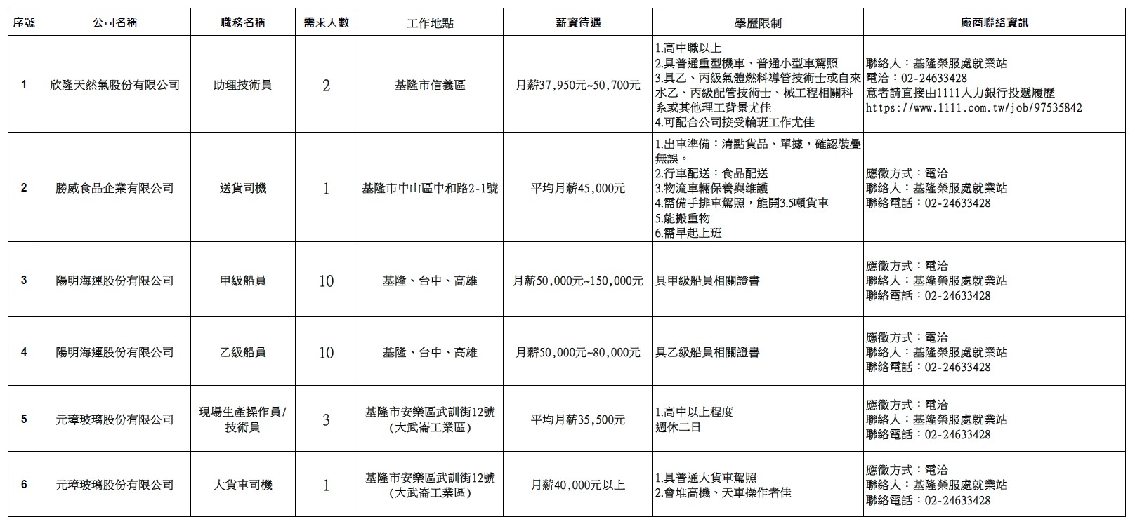 【基隆市榮服處】廠商職缺表(114.10.07)-6