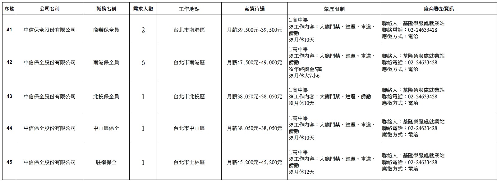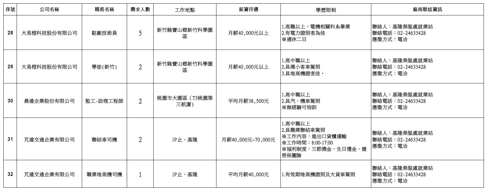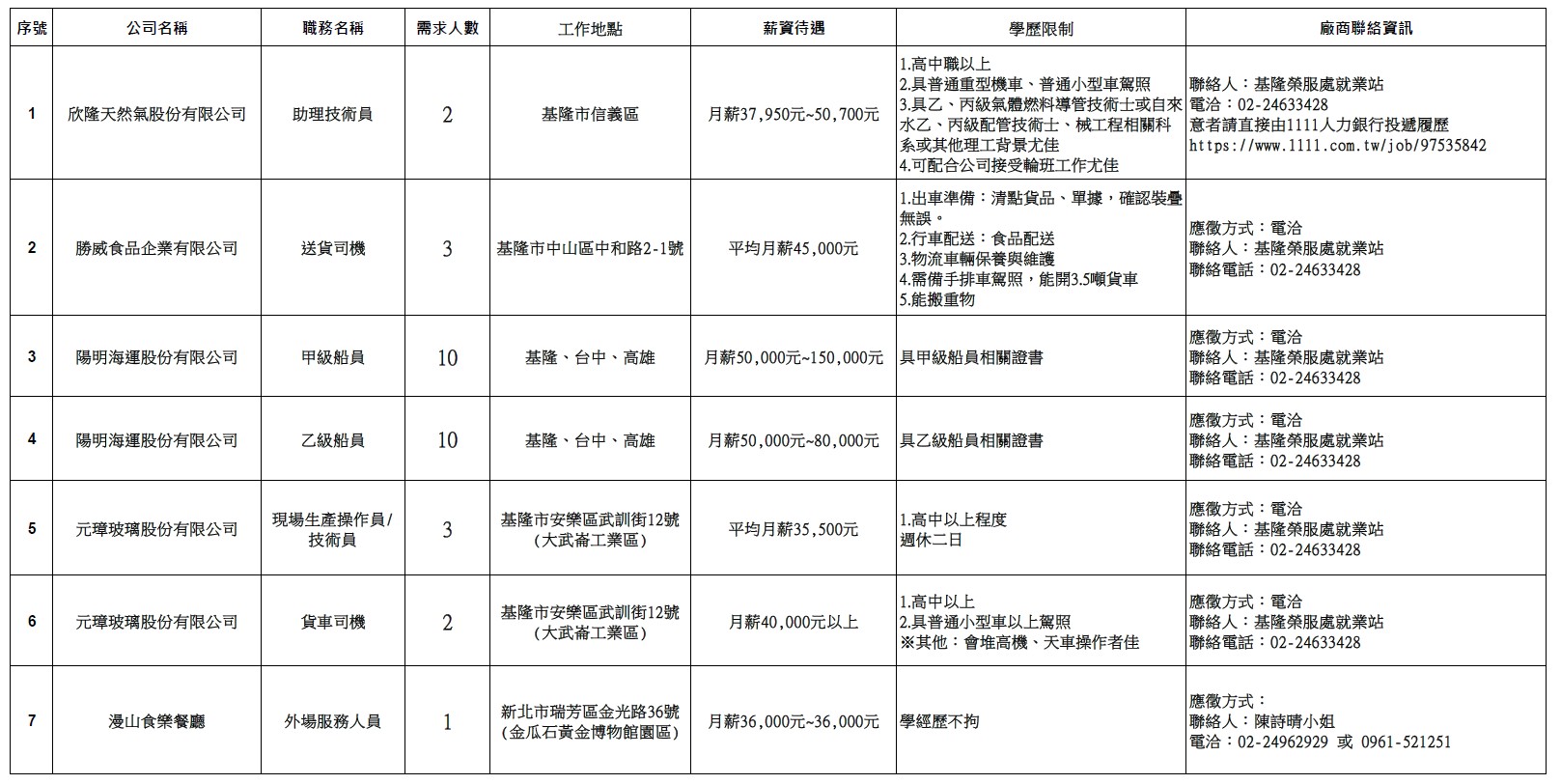 【基隆市榮服處】廠商職缺表(114.10.21)-7