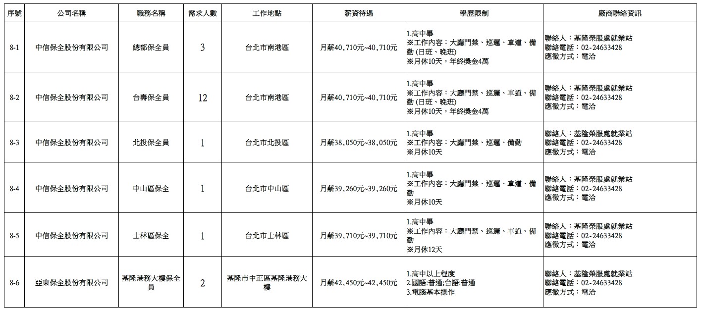 【基隆市榮服處】廠商職缺表(115.01.27)-8