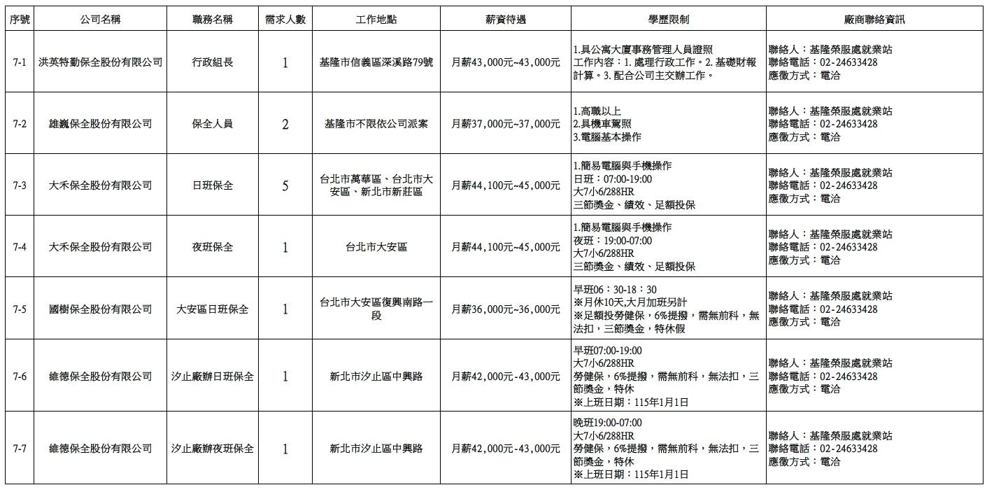 【基隆市榮服處】廠商職缺表(115.01.27)-7