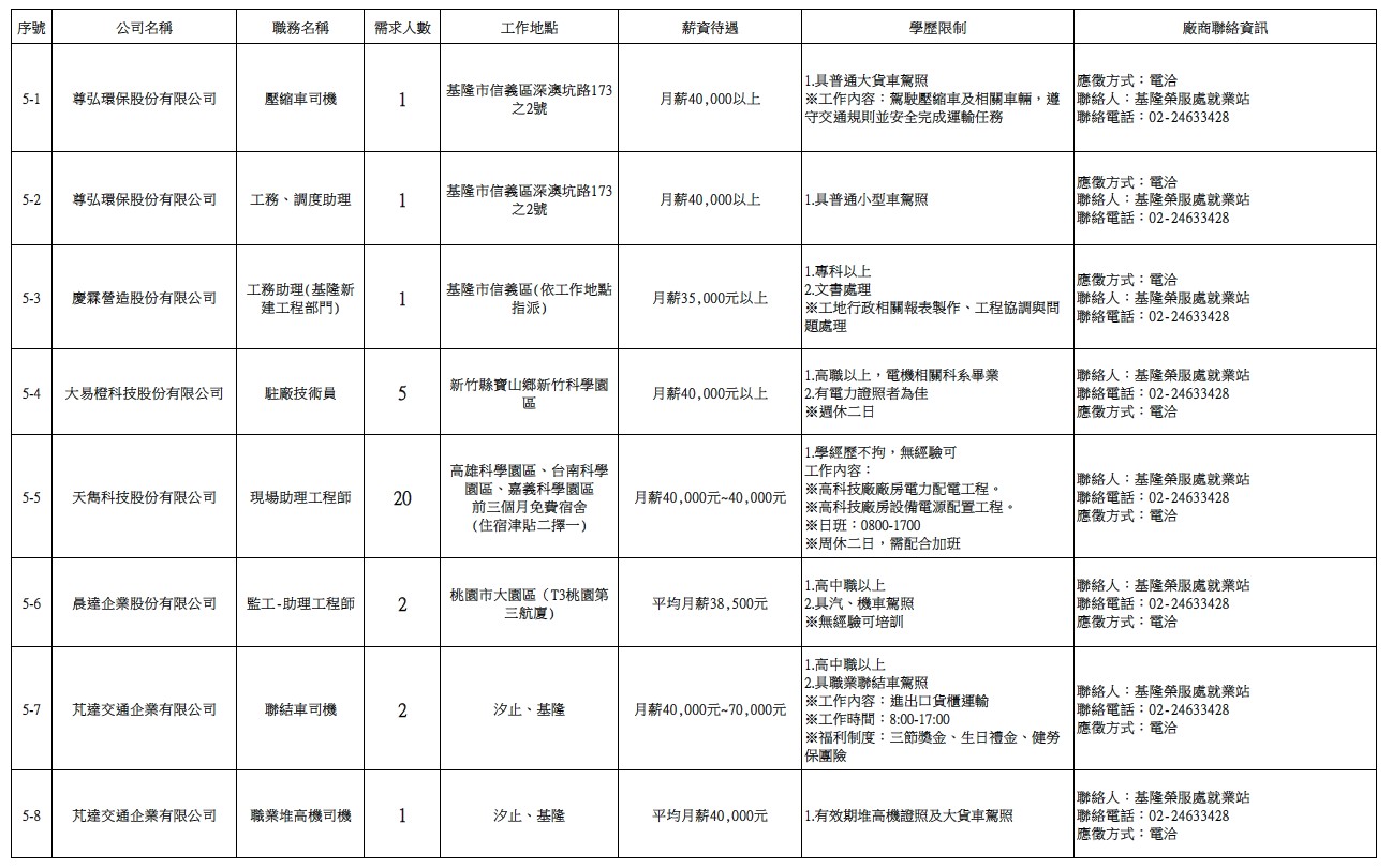 【基隆市榮服處】廠商職缺表(115.01.27)-5