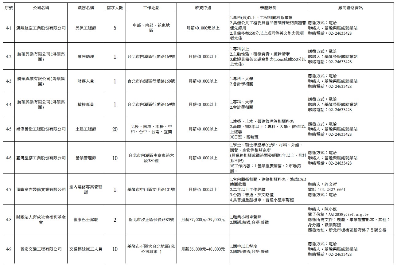 【基隆市榮服處】廠商職缺表(115.01.27)-4